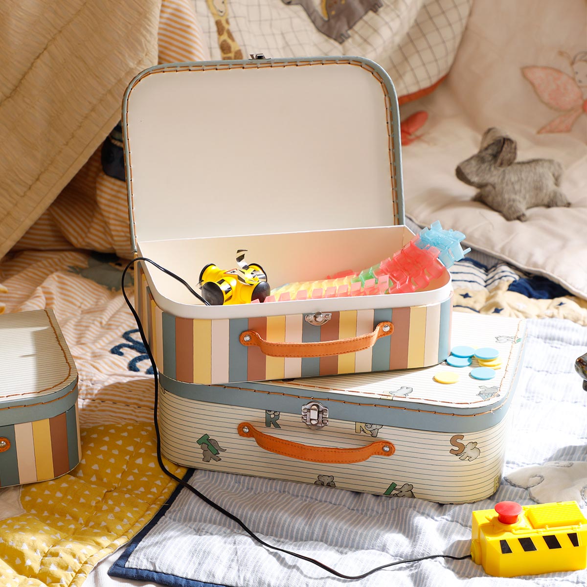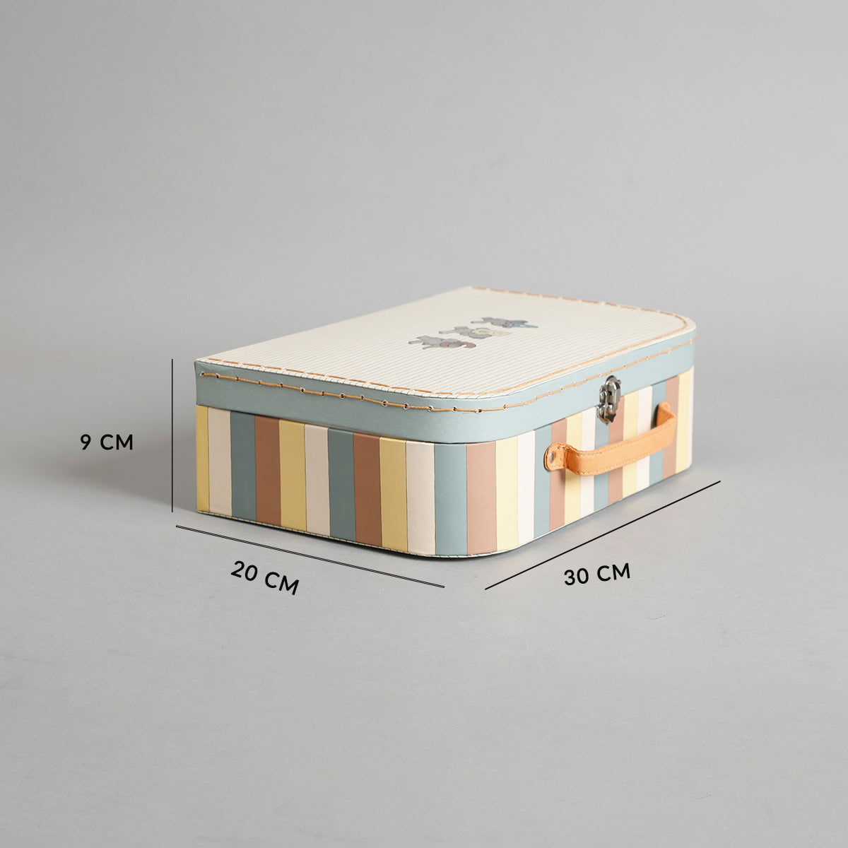The ABC Multi Printed Small Suitcase is a stylish and versatile storage box designed to keep your belongings organized, it's perfect for organizing kids' toys, stationery, books, and daily essentials. A fantastic choice for safely packing newborn clothes, it also shines as a unique, eye-catching option for special gifts. With its charming appeal, this suitcase is sure to become your child's favorite accessory.