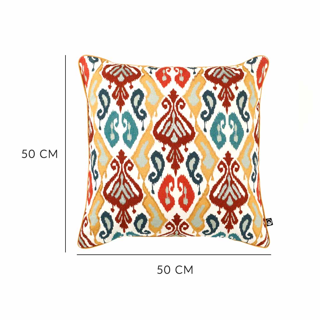 Brighten up your space with the vibrant Advik Cushion Cover. The rich ochre base, combined with playful multicolored accents, adds warmth and a burst of color to your room. Whether placed on your sofa or bed, this cushion cover is perfect for adding a bold, eclectic touch to your decor. Made from high-quality fabric, the Advik Cushion Cover is as durable as it is stylish, making it a versatile addition to any interior.
