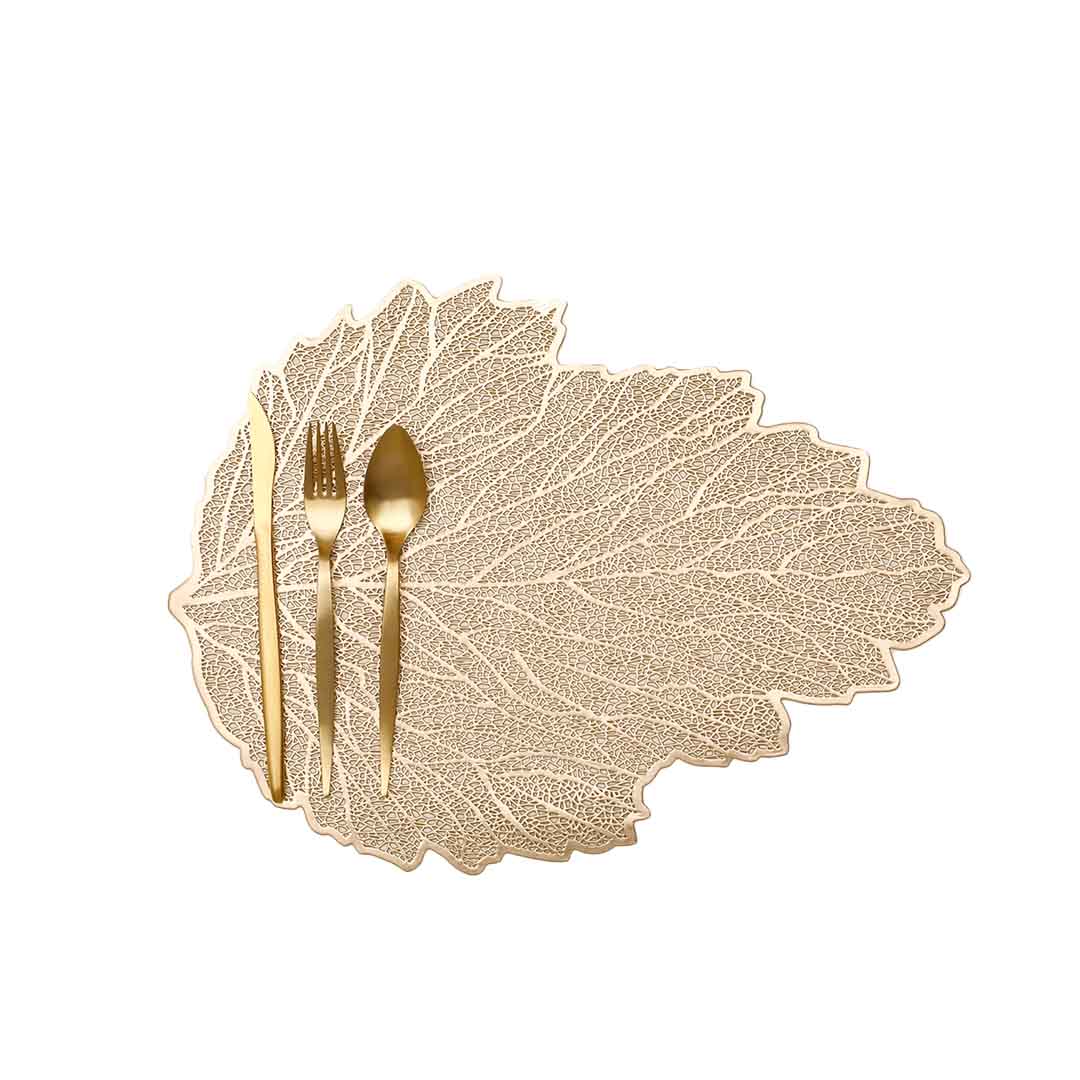 Add a touch of nature's elegance to your dining table with the Alis Placemat. Its exquisite leaf shape, paired with a luxurious gold finish and detailed texture, creates a striking focal point that adds depth and sophistication, elevating any dining setting.