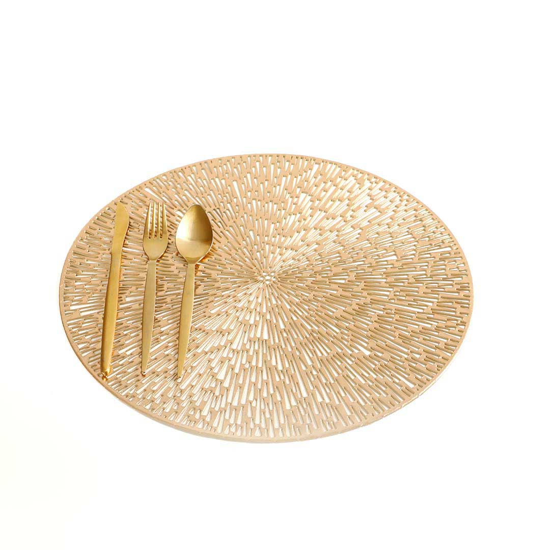 Infuse your table with timeless elegance using the Amelia Placemat. Its classic circle shape, combined with a radiant gold hue, offers a perfect blend of simplicity and luxury.