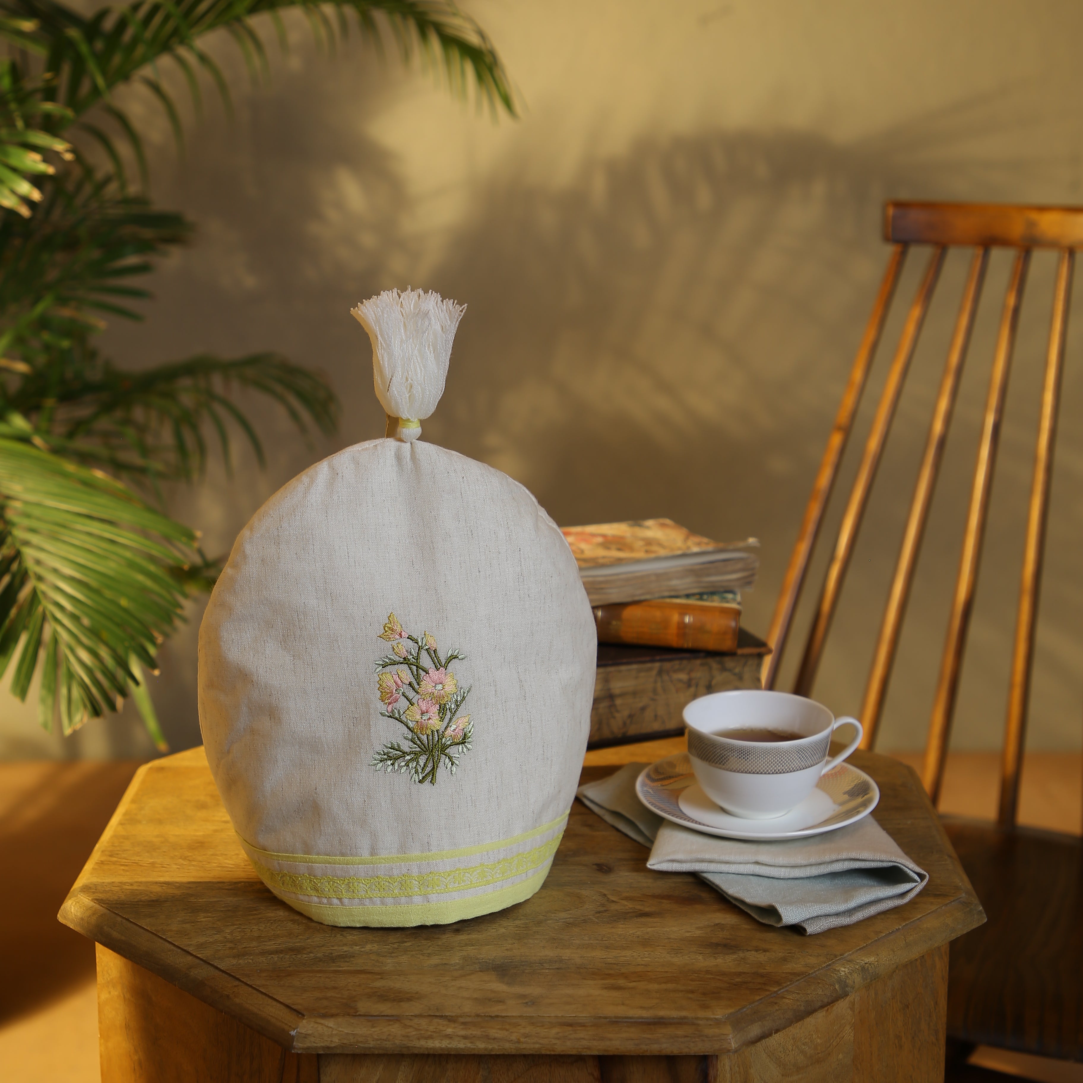 The Aria Tea Cosy crafted in a light yellow hue is an essential piece of lan for all your evening tea parties, Sunday brunches and alfresco meals. This essential ensures that your favorite hot beverage stays warm for a prolonged period while you rejoice in your get-togethers.