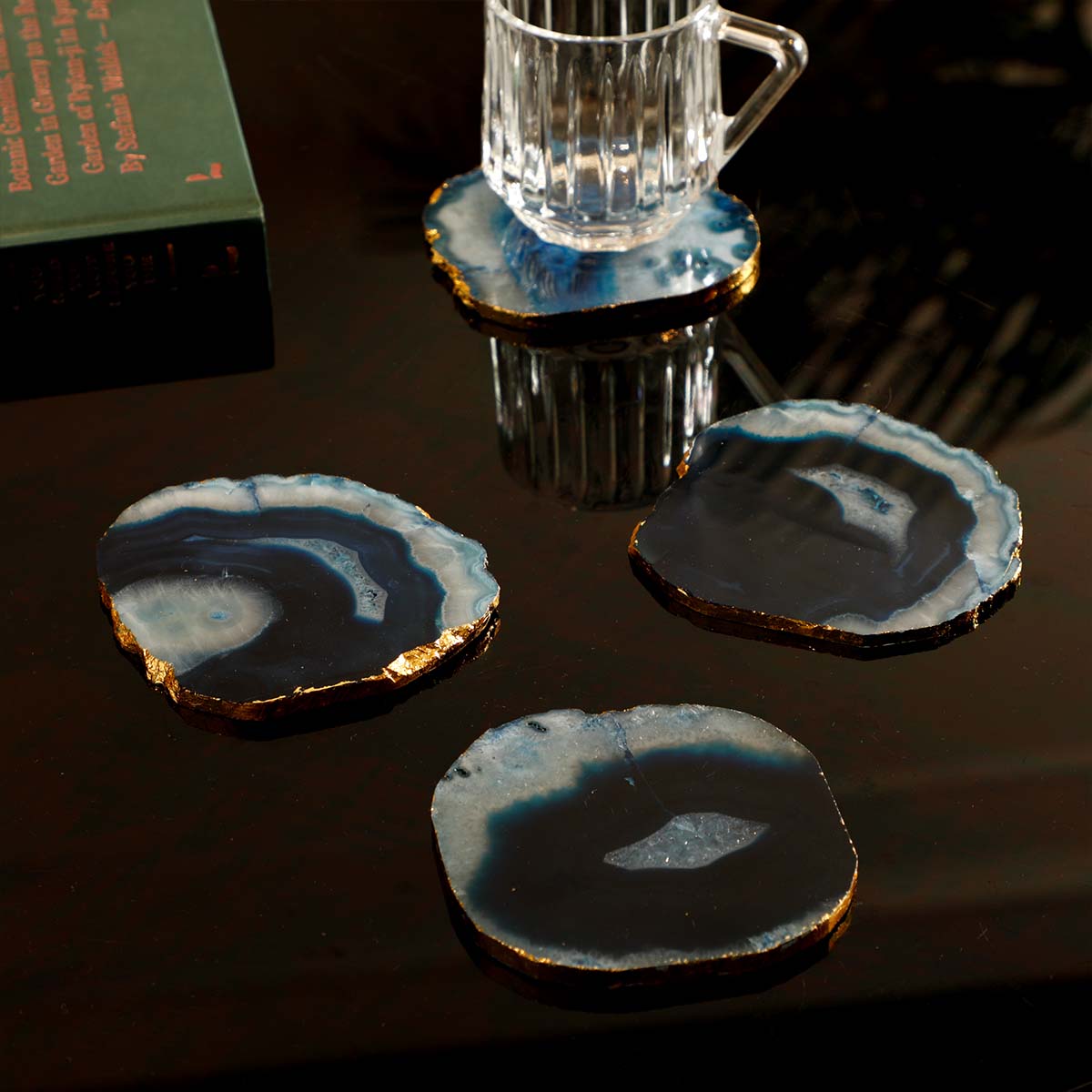 Each agate coaster is uniquely crafted from natural agate gemstones, showcasing mesmerizing patterns, swirls, and vibrant colors. These coasters bring a touch of nature's beauty into your space, adding an element of elegance and charm to your home decor.