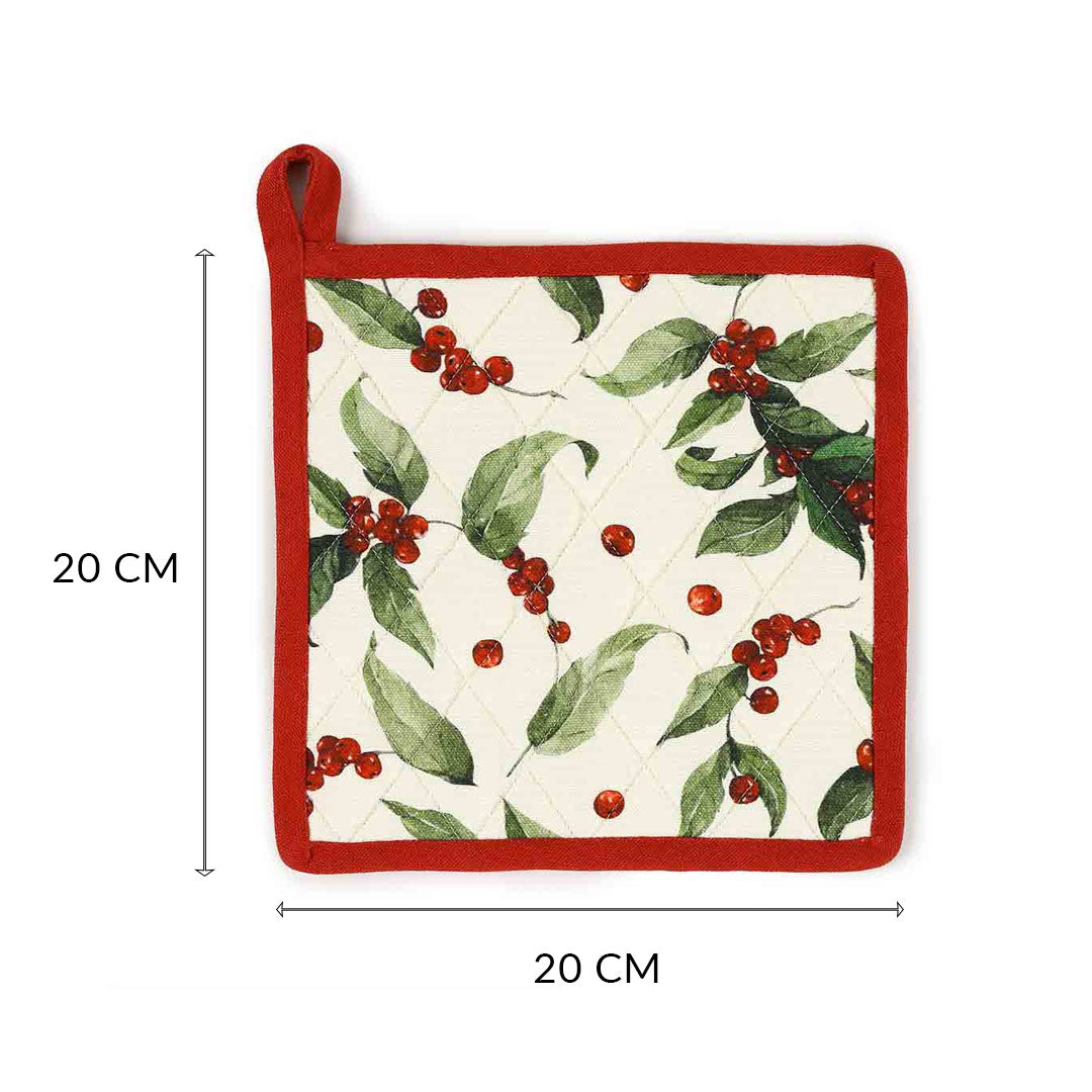 Illustrated with cherry and leaf motifs, this functional and aesthetic pot holder has excellent insulating properties and is perfect for daily use.