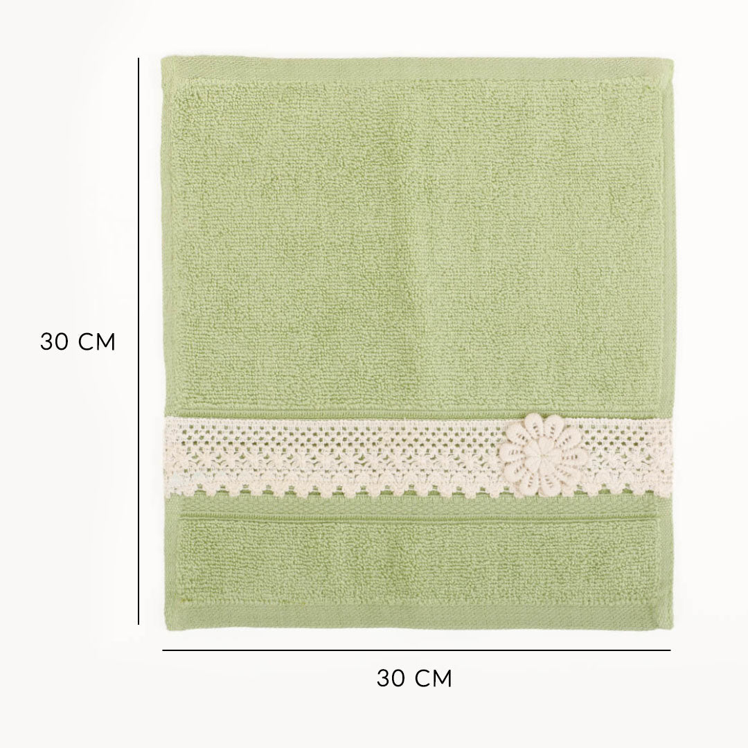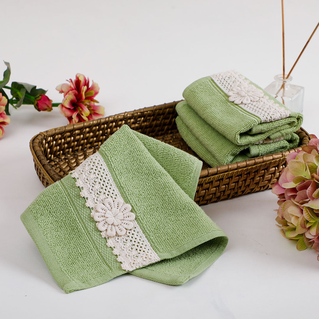 Wrap your daily routine in elegance with the Belle Green Face Towel Set of 4. Crafted from ultra-soft, absorbent cotton, each towel is adorned with delicate lace detailing that adds a touch of femininity and charm. Perfect for elevating your bathroom décor, these towels bring together beauty and comfort in a bold red hue. Ideal for everyday use or gifting, they dry quickly, feel luxuriously gentle on the skin, and retain their plush texture wash after wash.