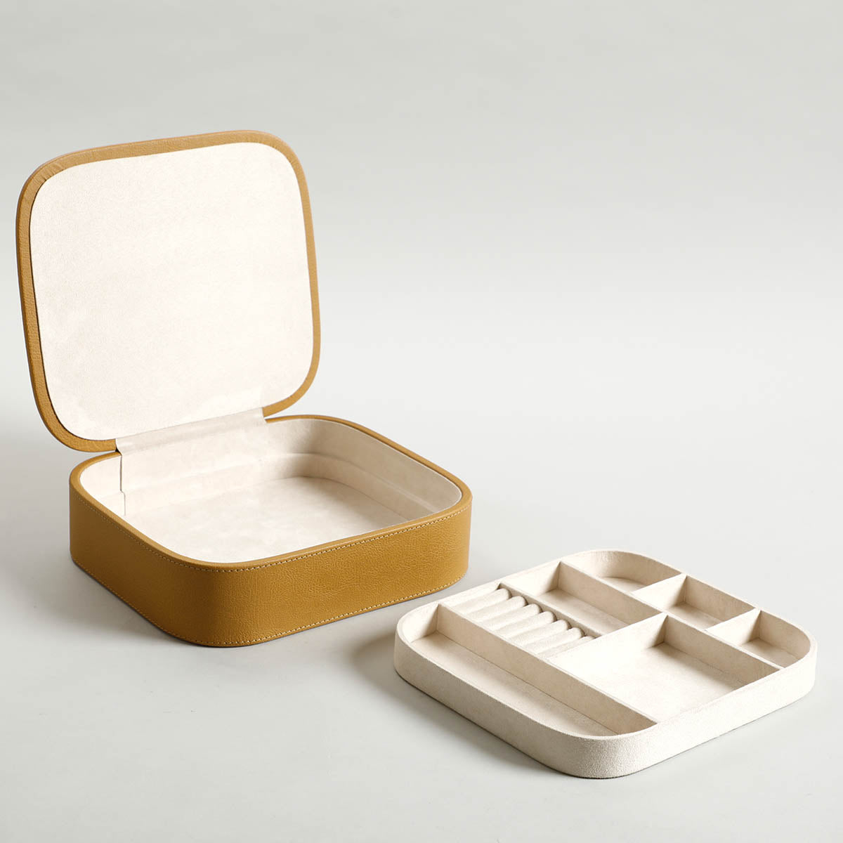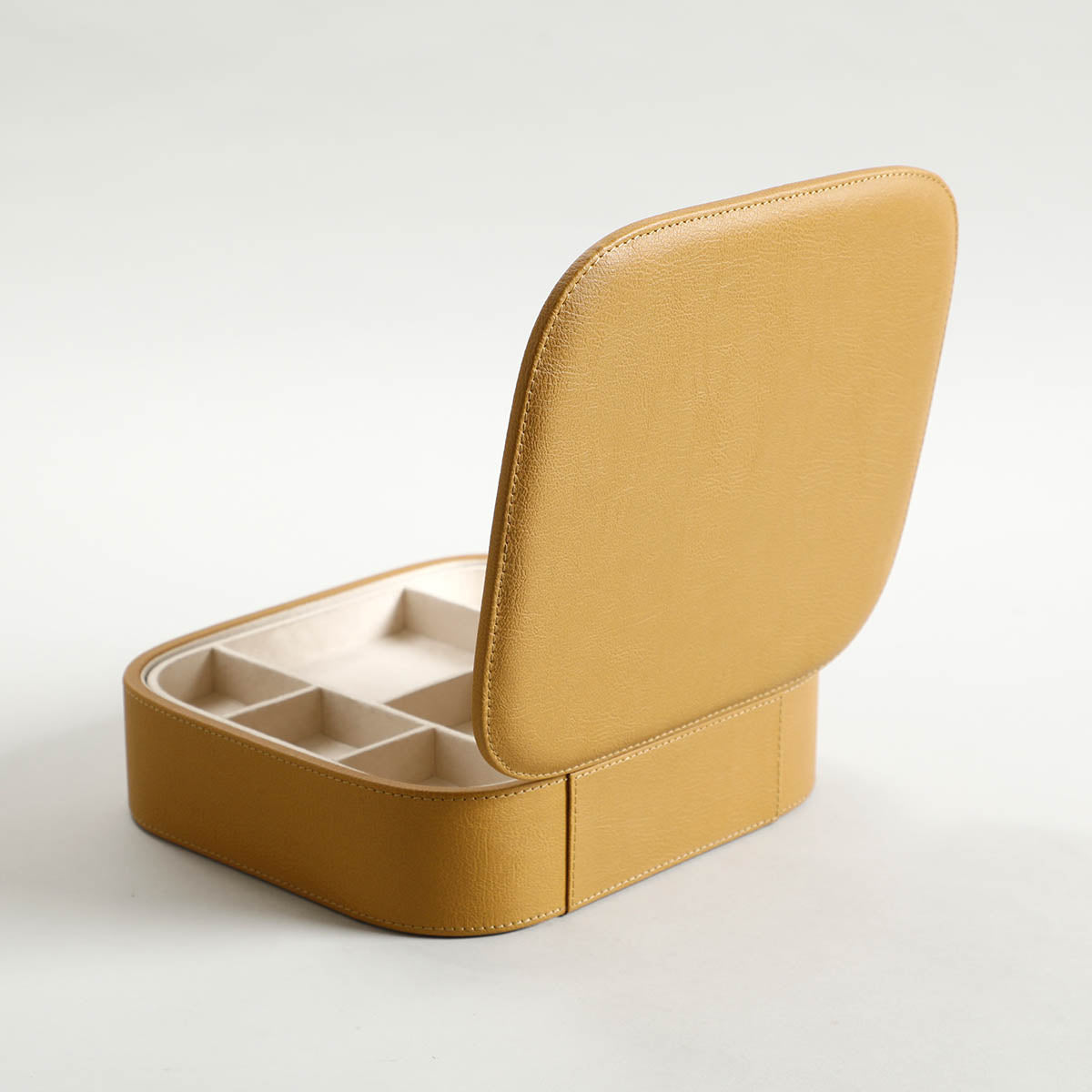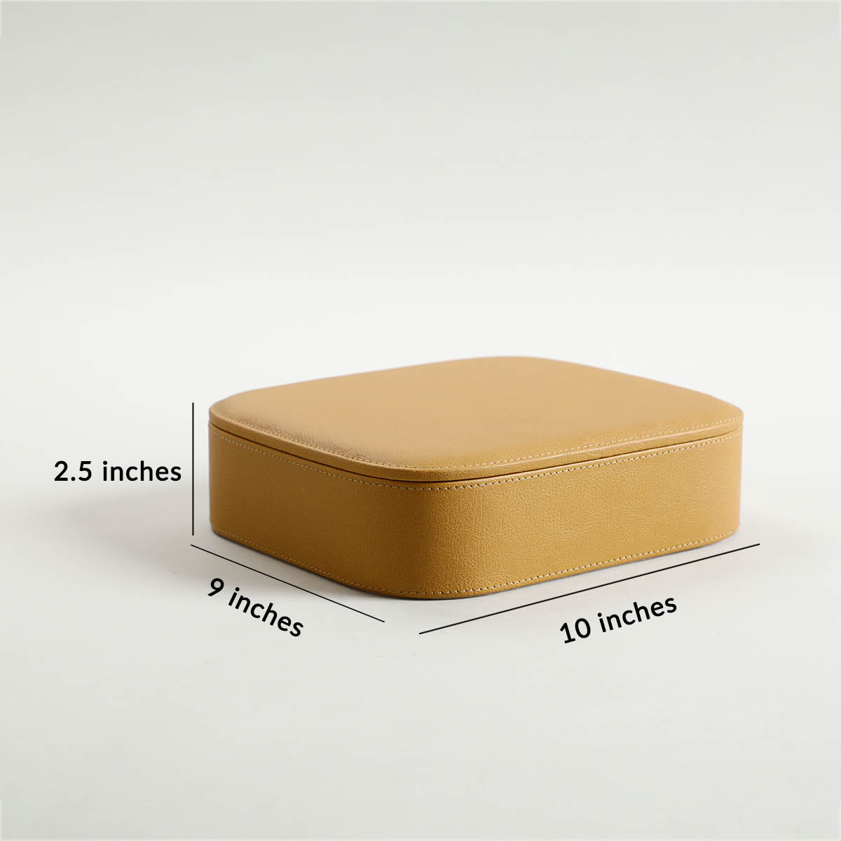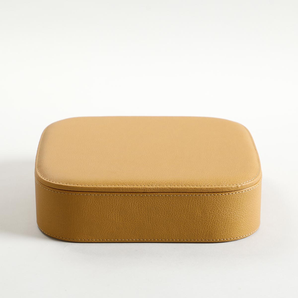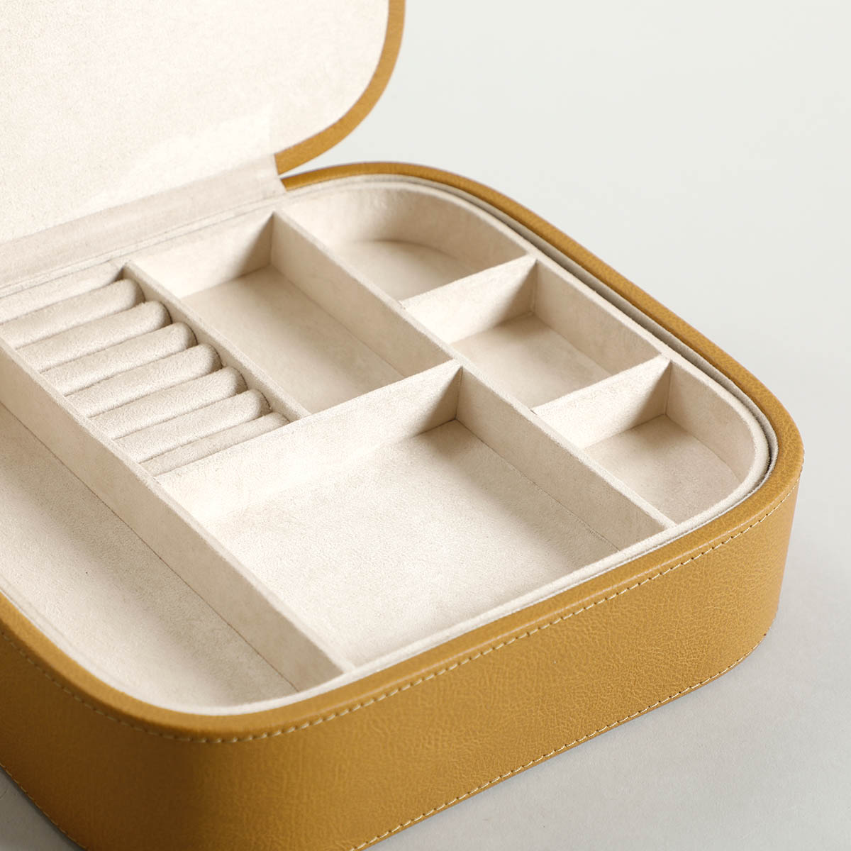 Introducing the Blaise Jewellery Box in sleek camel color. With multiple compartments and a soft interior lining, it's perfect for storing and protecting your favourite pieces. Perfect for storing your jewellery /cosmetics, watches and other accessories. It comes with a hidden magnetic closure.