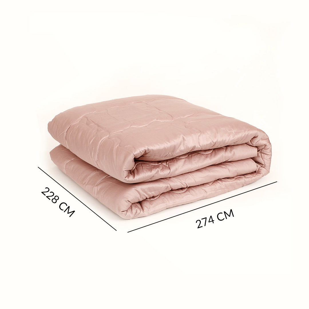Immerse yourself in the timeless charm of our Blush & Blush Reversible Comforter. The soft, velvety Blush tones exude romantic warmth and understated elegance, making it a perfect addition to any bedroom. Crafted with 400 thread count cotton, this comforter ensures long-lasting durability and a luxurious feel. The bio-polish finish enhances its silky softness, becoming even smoother with every wash. With its dual-color design, this comforter is ideal for year-round use, combining both style and comfort for a cozy, inviting sleep experience.