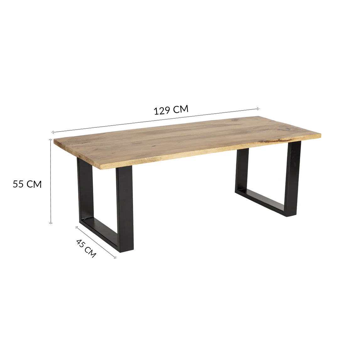 Minimal & Simple look of Broomley Coffee table is a much required for any living room Vignette, The Coffee table is developed in Mango Wood Top and Mild steel base. The black powder coated metal base is a pair of leg base with confined Rectangular shape.