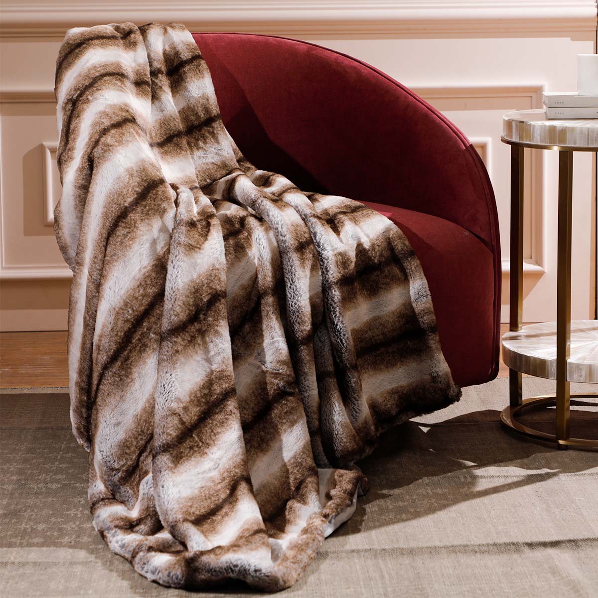 Made of synthetic fibers with microfiber backing to keep you warm this throw is 100% cruelty-free.
