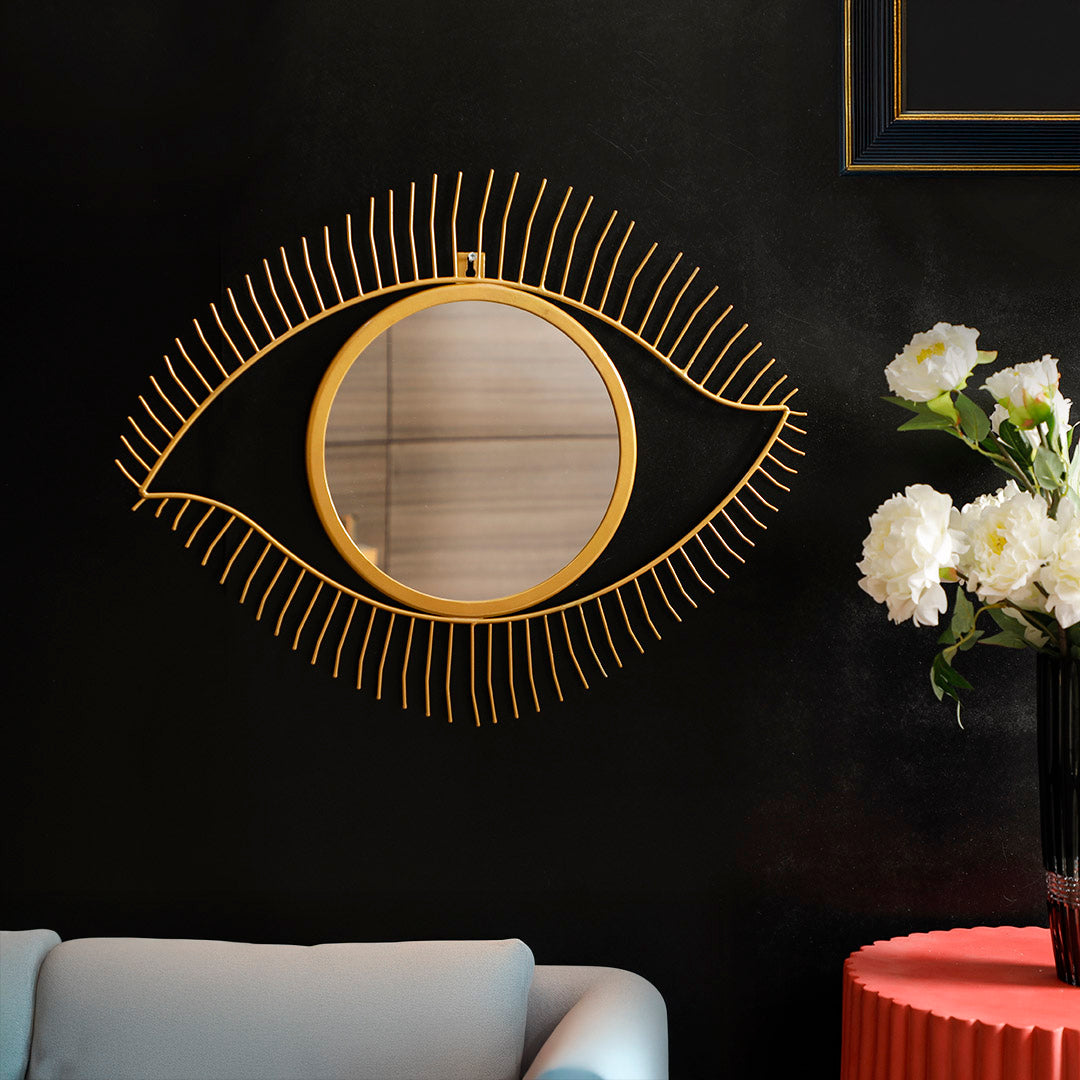 Adorned with a delicate and sophisticated metal frame, the Charvy Mirror illuminates any space ranging from your living room, bedroom to the hallway. This quirky design resembling an eye provides the perfect wall feature for your abode this chic accessory is a must-have for the elevated lan of your home decor.