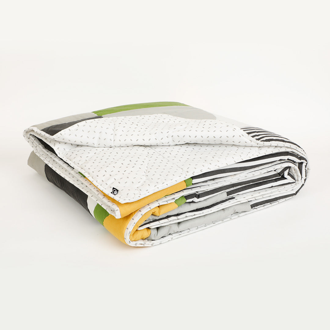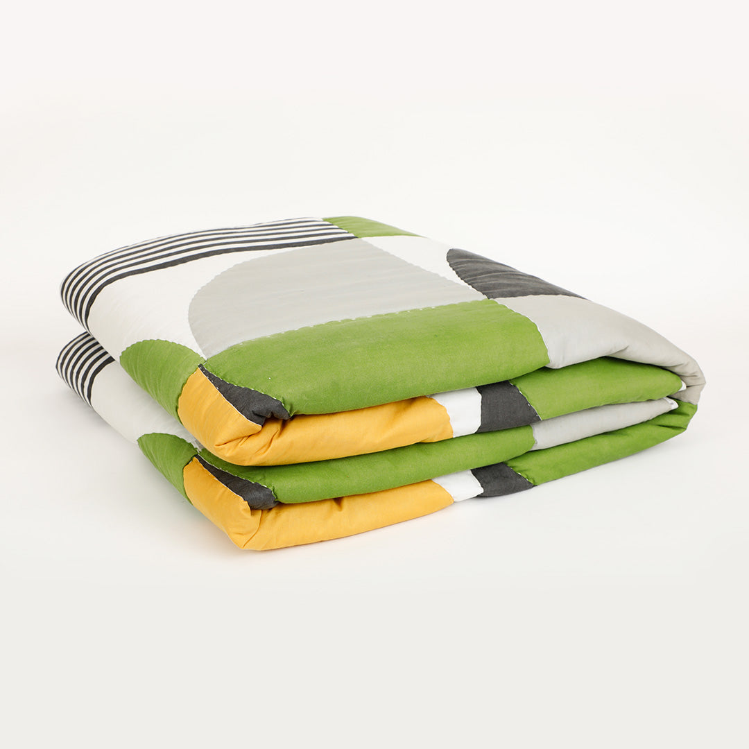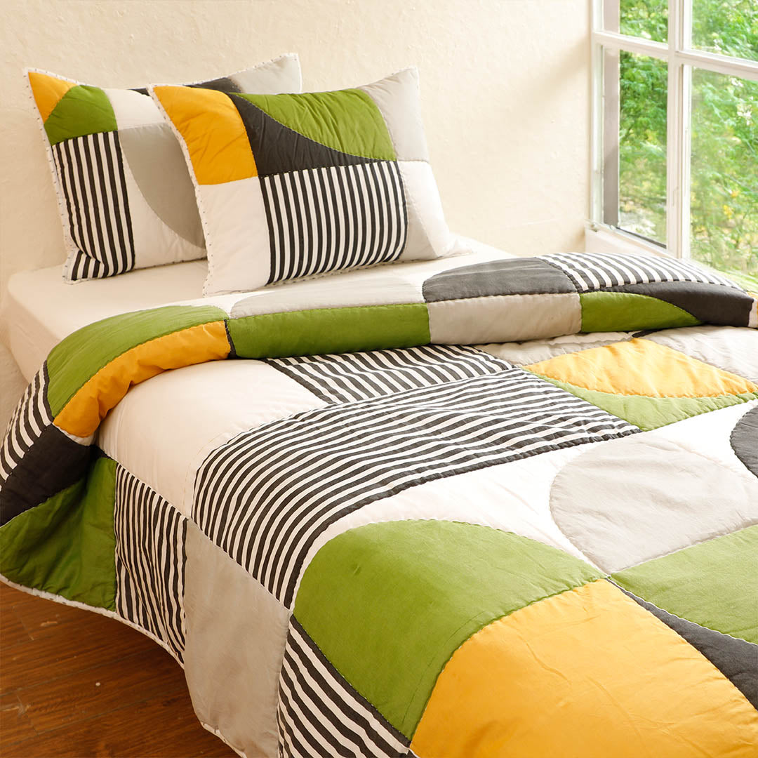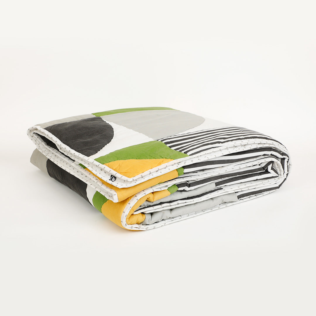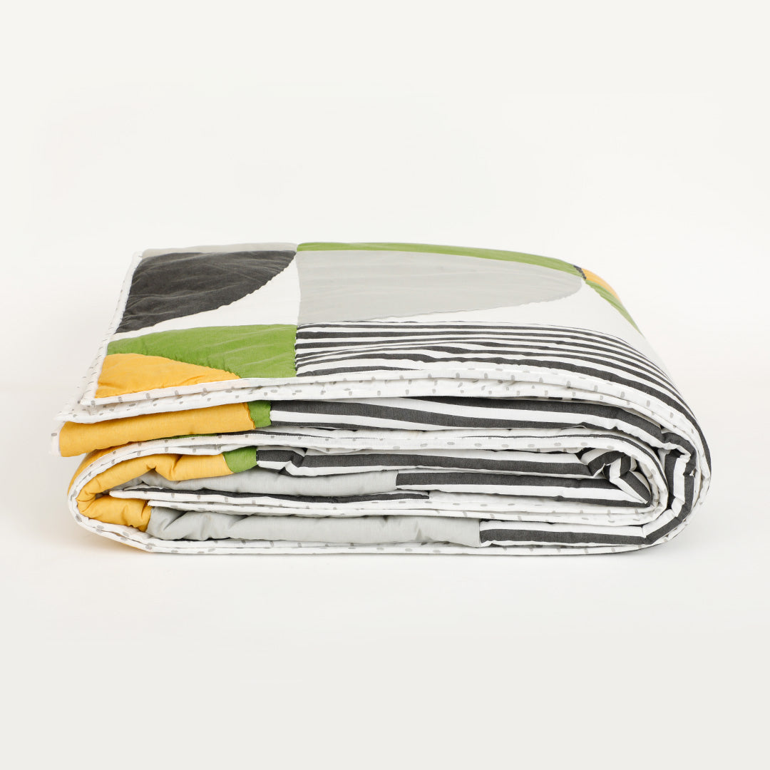 Add a bold statement to your space with the Circa Quilt. Featuring a dynamic mix of geometric shapes and clean stripes, this design brings a modern edge while staying effortlessly versatile. The carefully balanced pattern adds visual interest, making it a perfect accent for your beds.