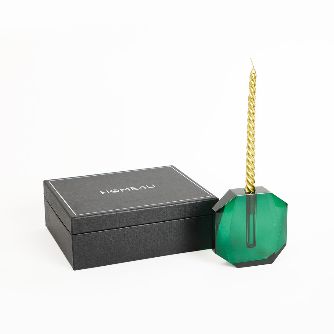The Midori Crystal Vase/Candle Holder Gift Box is the embodiment of luxury and modern sophistication. With its sleek design and flawless crystal clarity, this handcrafted vase offers a minimalist yet opulent aesthetic. Perfect for both contemporary and classic interiors, the Midori Vase enhances any space with its elegant form and lustrous finish. Whether showcasing a floral arrangement or standing alone, this premium piece adds a touch of refined luxury to your home. Comes with a golden taper candle in a premium gift box . Its multipurpose use make it an excellent choice for holiday gifting .