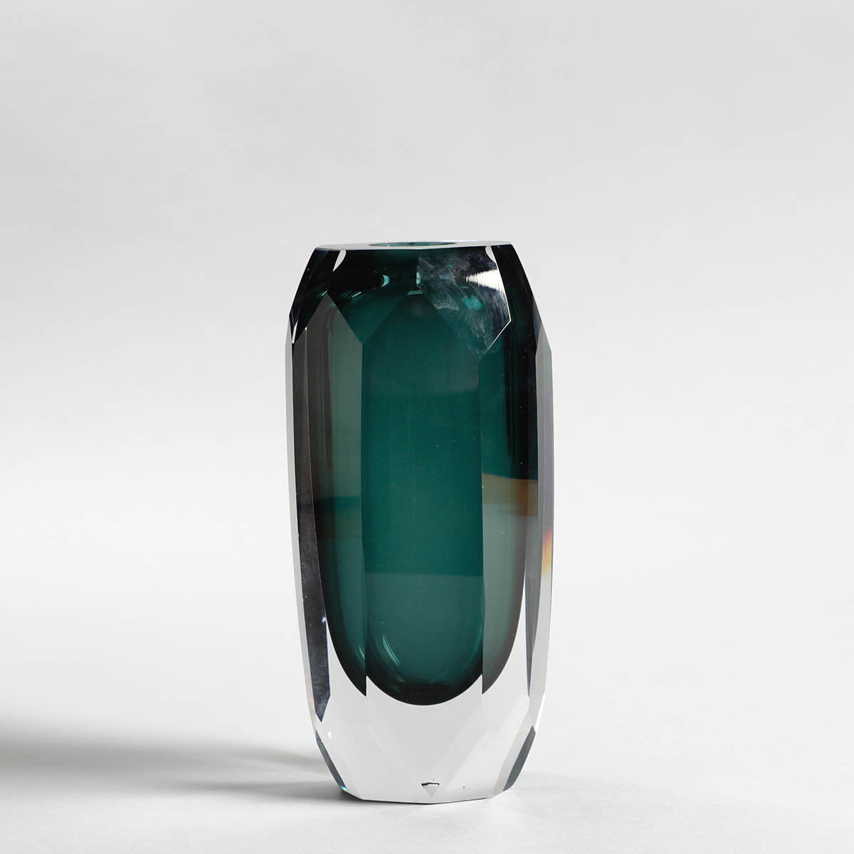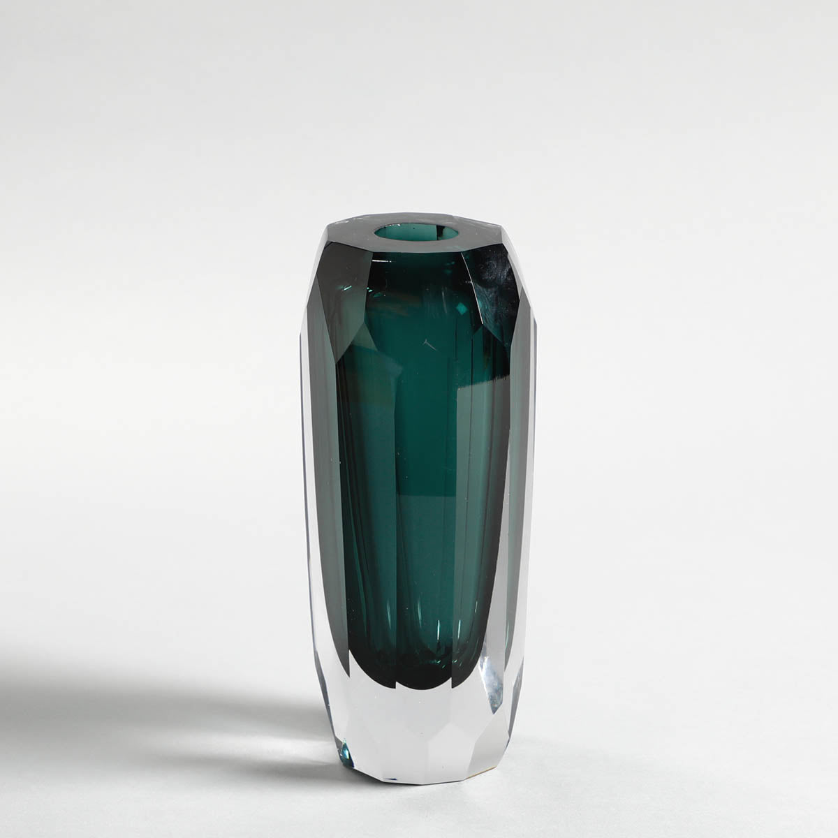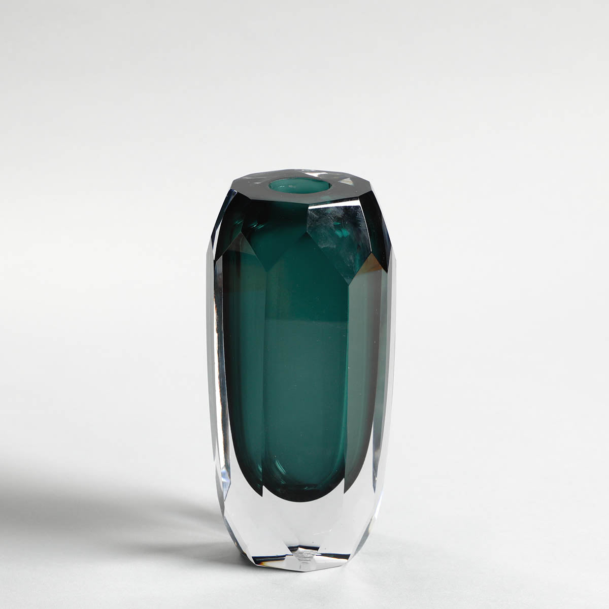 The geometrically champhered surface makes the language of Cuba Hand- Cut Crystal Vase, a statement piece to have, paralleled with utility of vase shaped with coloured crystal elevates the Interior space. The Crystal Vase is available in Teal Green colours. Any microscopic bubble that you notice is part and inherent beauty of the manufacturing process.