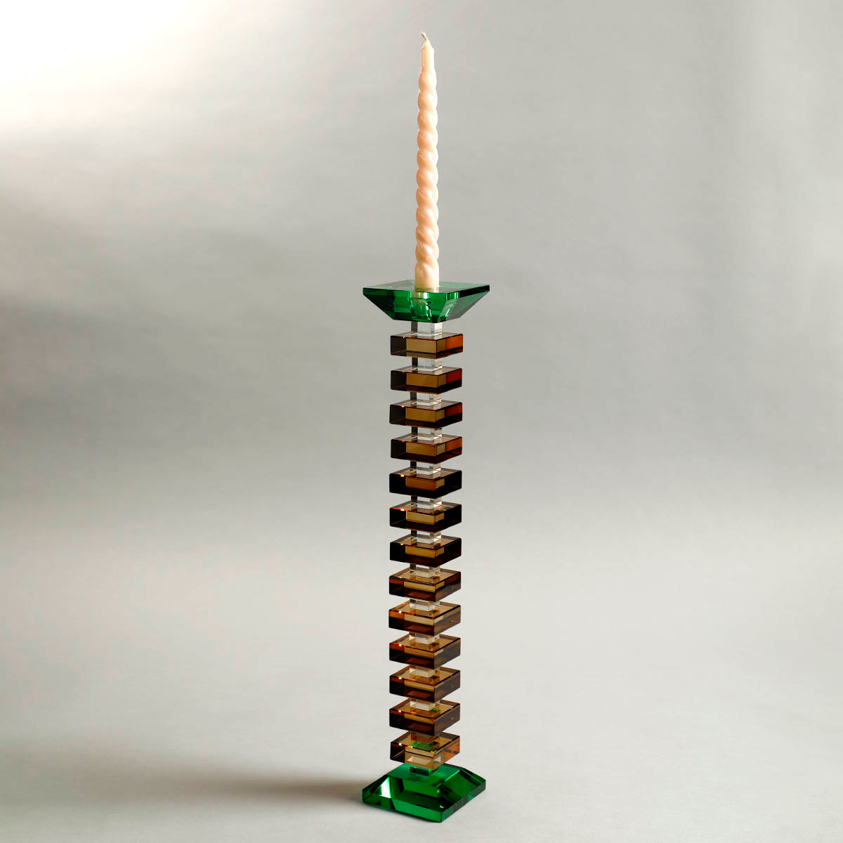 The craftmanship to make Dorliu Candle Holder is an impeccable piece of Luxury. The Range is available in 3 sizes. Arrange the Dorliu Candle Holder, as a set or vignette it individually, the grace is elevated green & brown colour crystal material