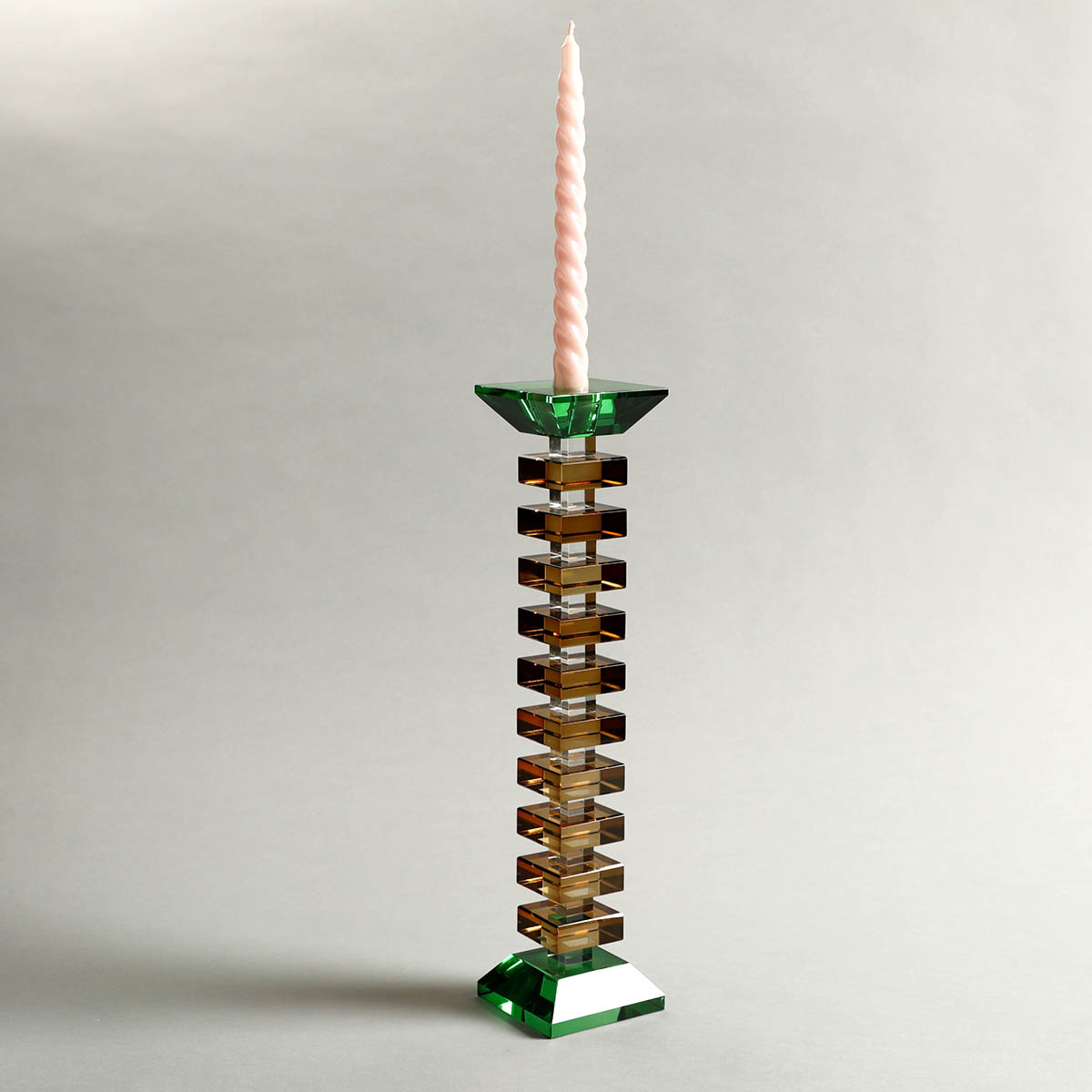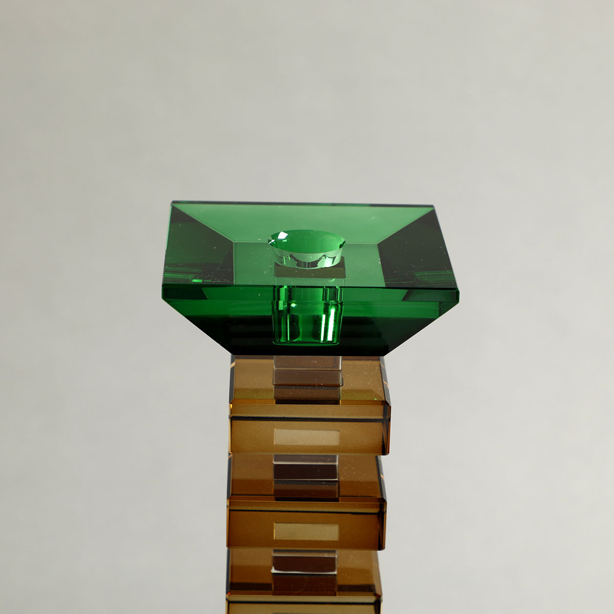 The craftmanship to make Dorliu Candle Holder is an impeccable piece of Luxury. The Range is available in 3 sizes. Arrange the Dorliu Candle Holder, as a set or vignette it individually, the grace is elevated green & brown colour crystal material