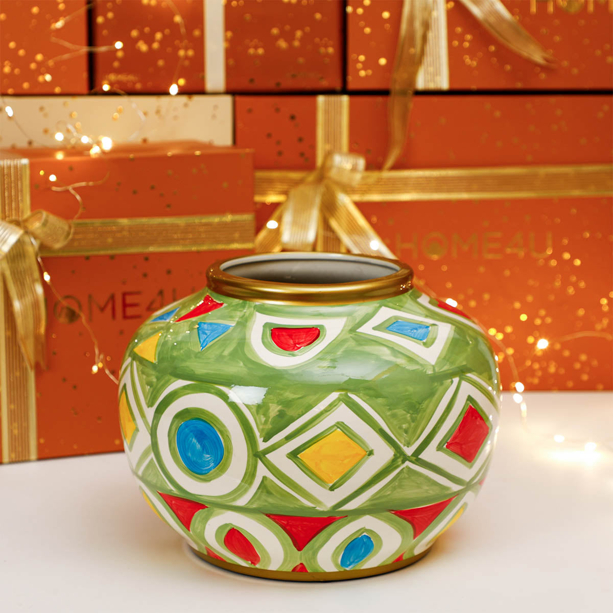 The Elysian Porcelain Vase is a beautifully crafted piece that brings elegance and charm to any home décor. With its sleek design and fine porcelain craftsmanship, this vase is perfect for showcasing festive floral arrangements or as a decorative accent. Its timeless beauty and graceful design make it an ideal Diwali gift, adding a touch of luxury and style to any home.