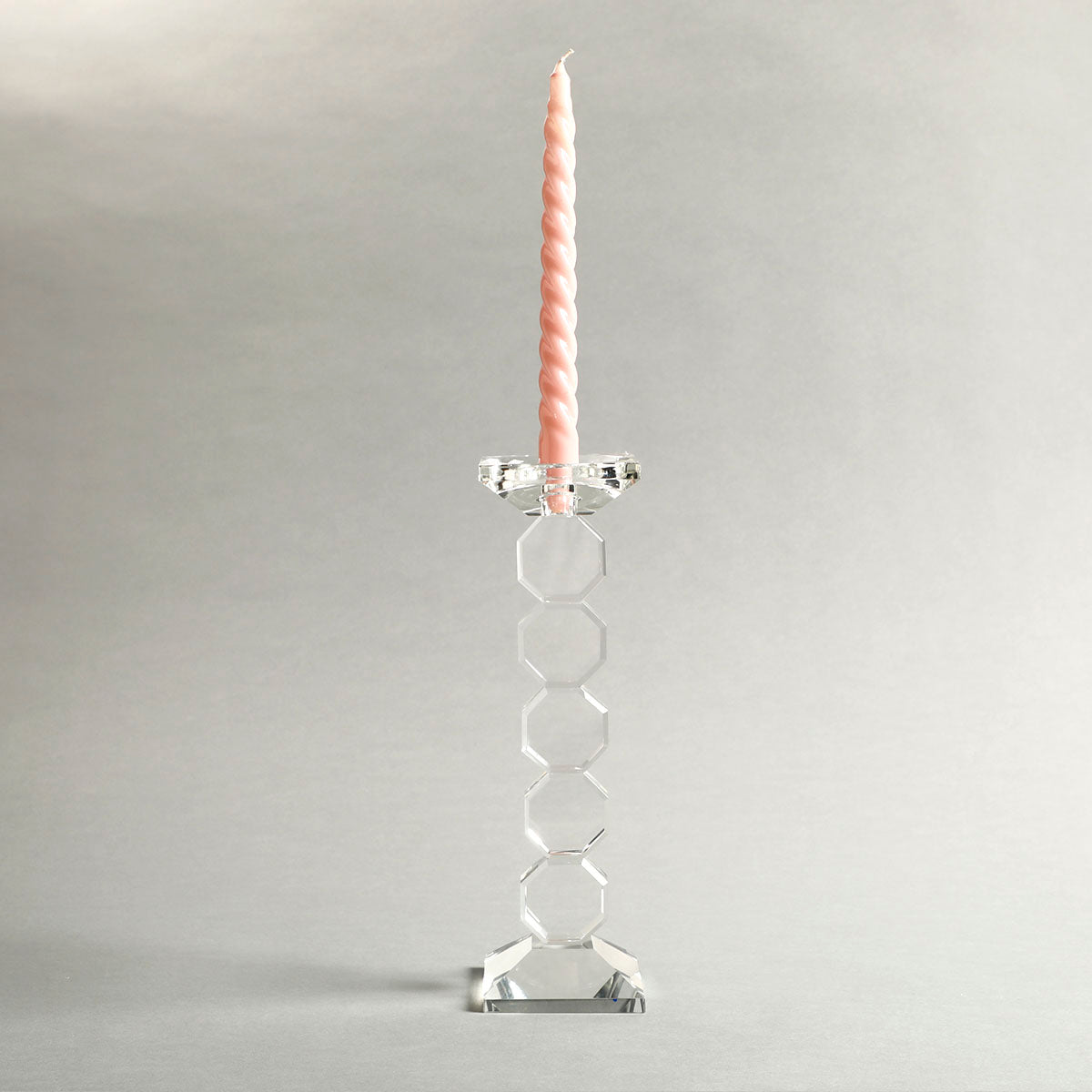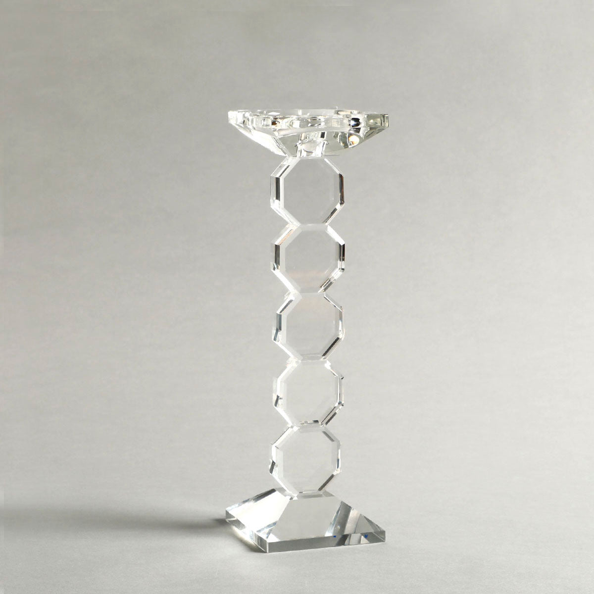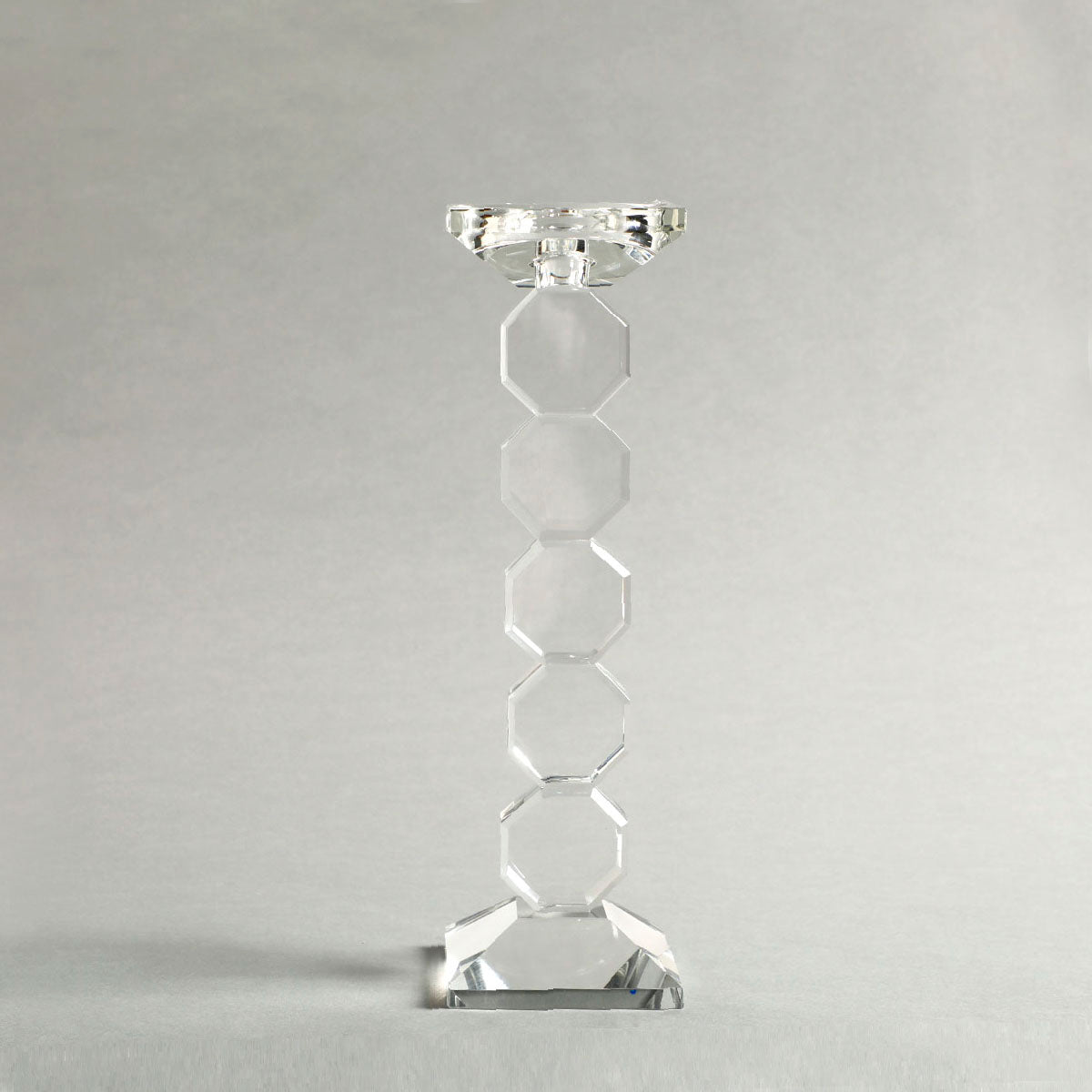 The craftmanship to make Fabella Candle Holder is an impeccable piece of Luxury. The Range is available in 3 sizes. Arrange the Fabella Candle Holder, as a set or vignette it individually, the grace is elevated clear crystal material
