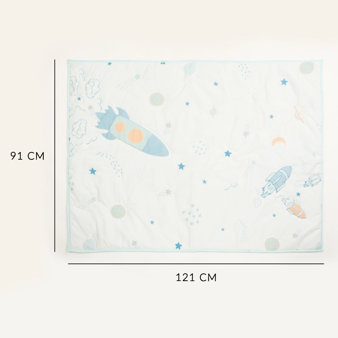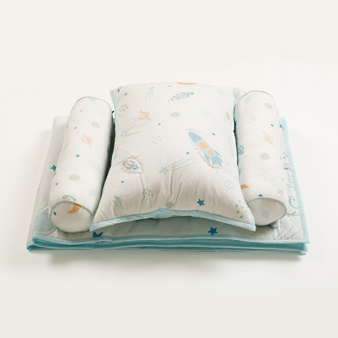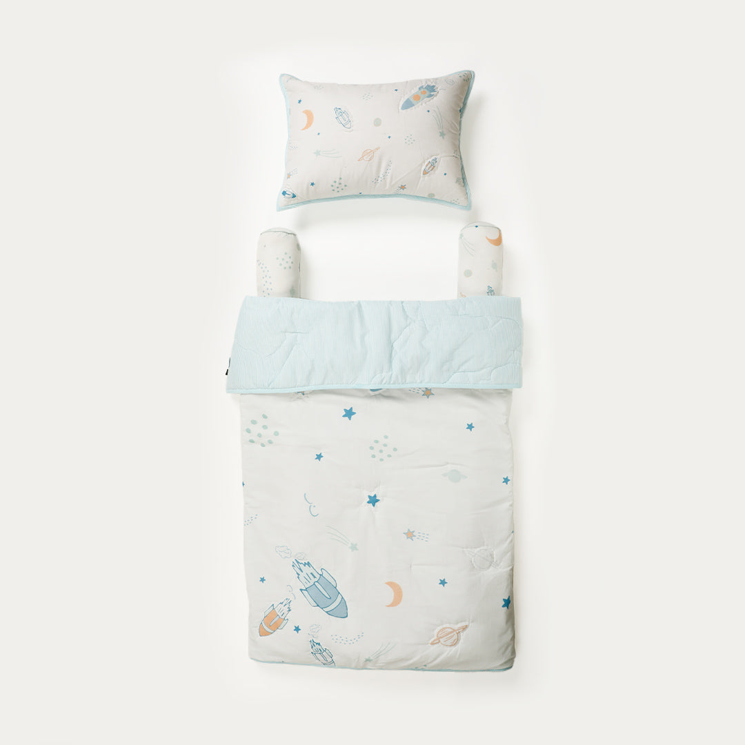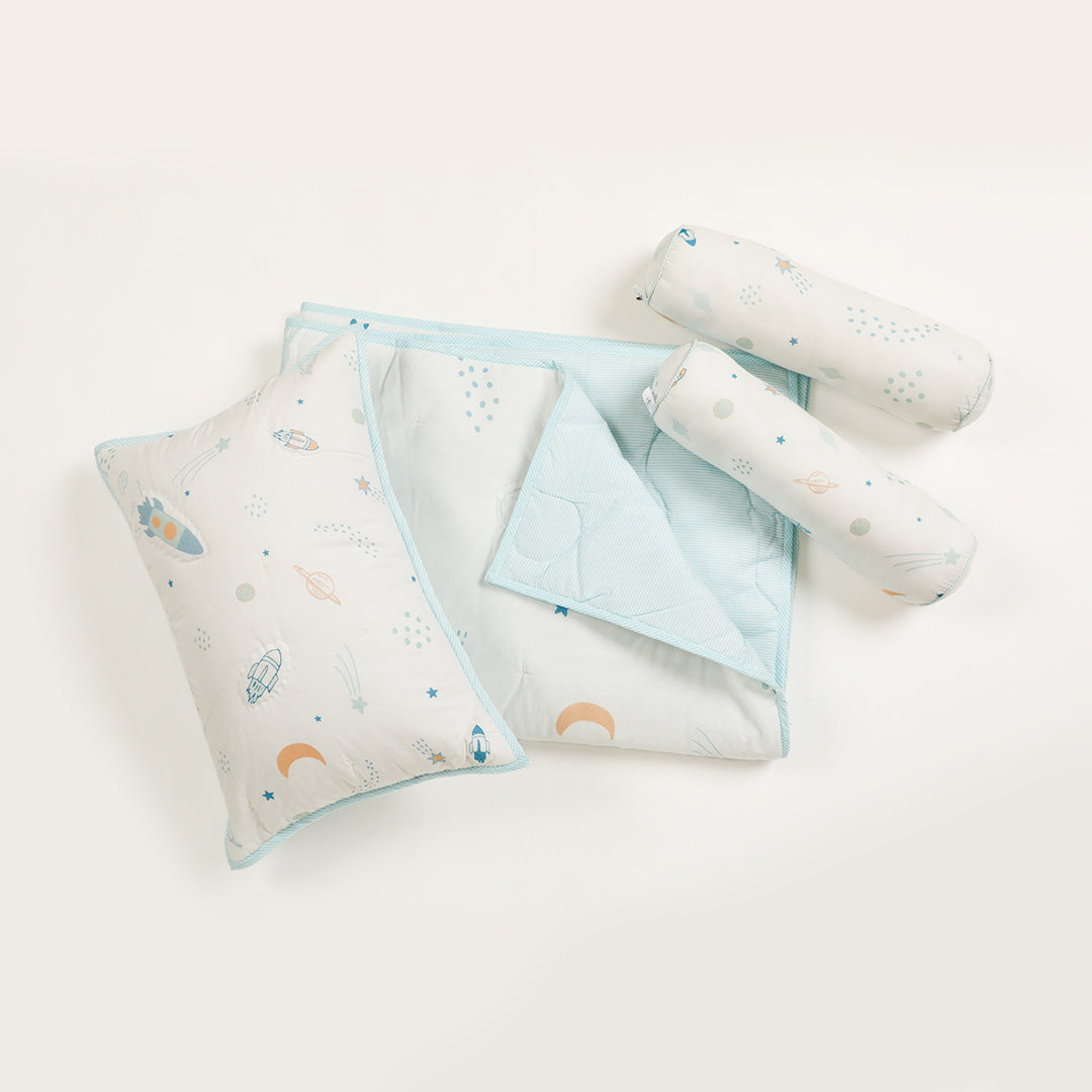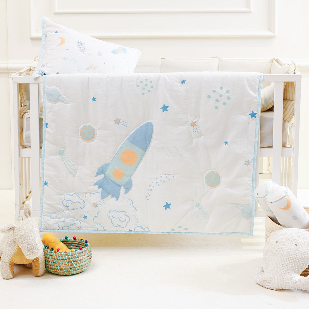 Wrap your little star in celestial comfort with the Galaxy Cot Set, thoughtfully designed to bring warmth and wonder to your baby’s space. Featuring a dreamy quilt, two soft bolsters, and a plush pillow, this 4-piece set creates a cozy and secure cocoon for restful naps and peaceful nights. Adorned with a subtle yet charming galaxy-inspired design, it’s crafted in soft, breathable fabrics that are gentle on delicate skin and easy to care for. Perfect for creating a serene, starry theme in your nursery.