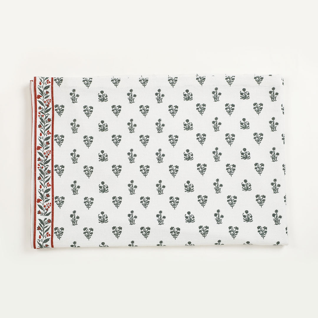 Elevate your dining experience with the refined beauty of the Gardenia Table Cloth. Featuring an artful arrangement of delicate floral blooms and graceful green stems, this design captures the serene essence of a private garden. Meticulously crafted from great quality cotton slub, it drapes effortlessly, adding a touch of quiet luxury to every occasion from intimate dinners to grand get togethers.