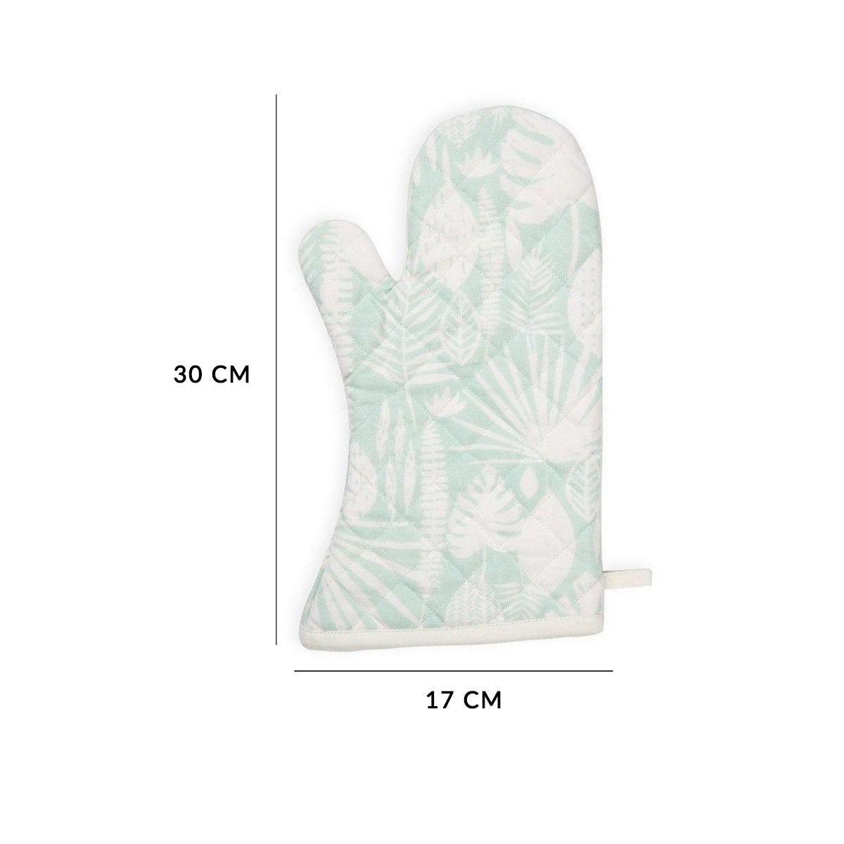 This season give your kitchen a new look and feel, with the unique and subtle colors theme. Add this beautiful leaf-patterned HAZEL WHITE GREEN OVEN GLOVE to your kitchen collection.It also comes with a complete kitchen set with a kitchen towel, potholder, and apron.
