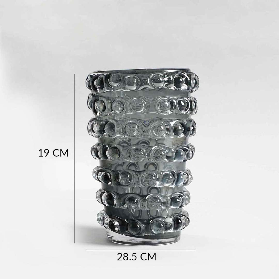 The geometrically champhered surface makes the language of Crystal Vase, a statement piece to have, paralleled with utility of vase shaped with coloured crystal elevates the Interior space. The Crystal Vase is available in Grey colours. Any microscopic bubble that you notice is part and inherent beauty of the manufacturing process.