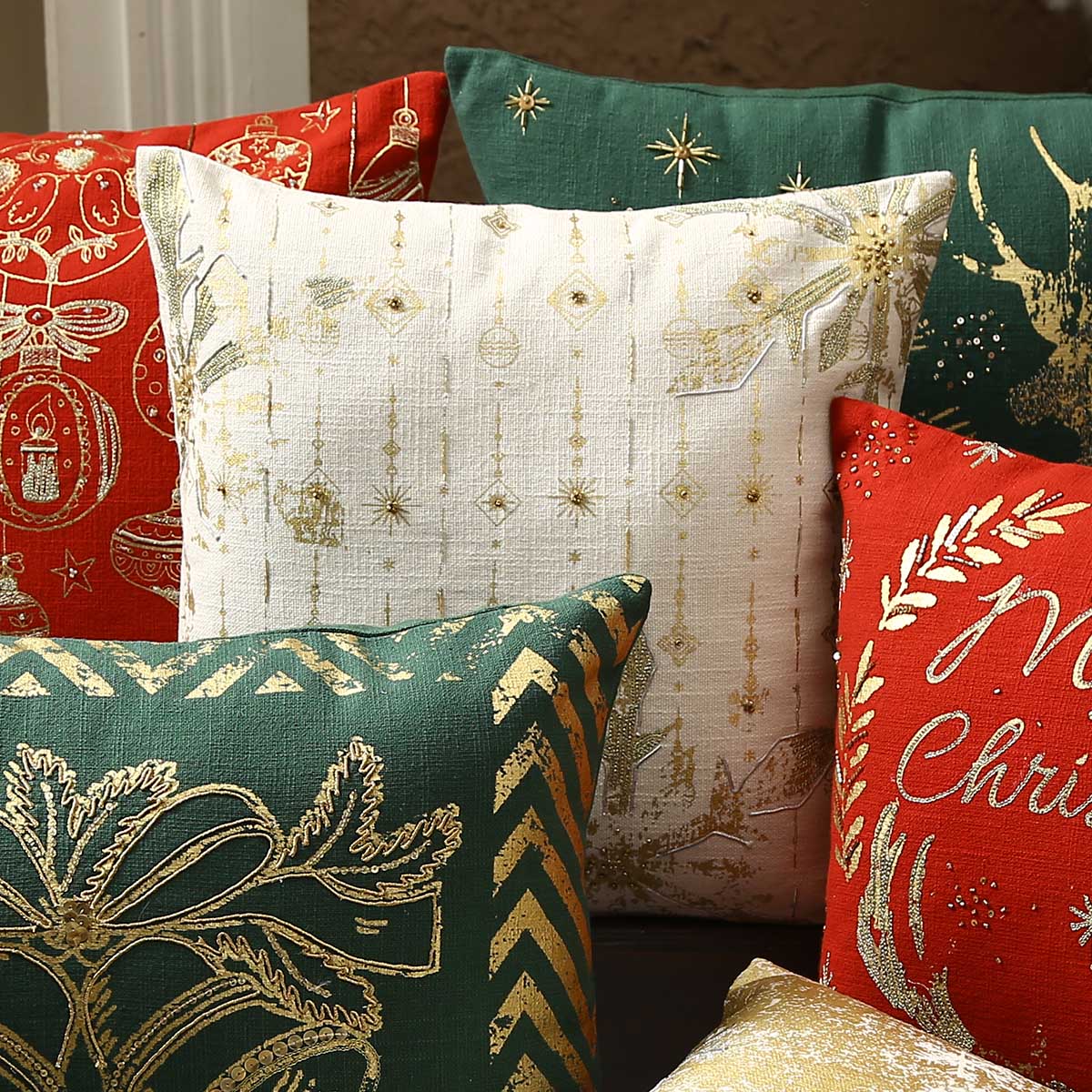 When it comes to holiday decorating, adding cushion covers is the easiest way to bring texture and color into a room. Crafted in cotton slub with a white base, the Ice Kingdom of Fun Cushion Cover is the perfect essential to spruce up your space with the festive fervor!