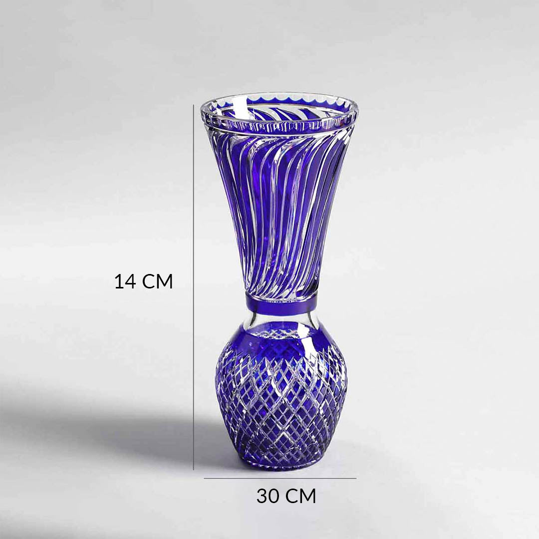 The crystal glass Vase is an example of fine cut work craftsmanship. The Julian Hand-cut Crystal vase has a geometrical tessellated pattern to it, making it a fine contemporary piece. Any microscopic bubble that you notice is part and inherent beauty of the manufacturing process.