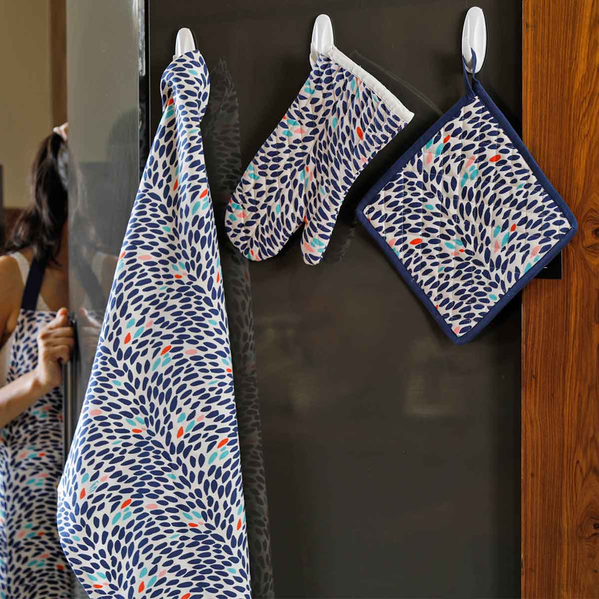 Kusvira Kitchen Linen Range is a collection of kitchen Linens pieces. One of it, the Kusvira apron is easy to adjust and comfortable. This apron can be your perfect pick for your Kitchen. With the one Front Pocket, the apron is a quick escape for urgent kitchen chores. Made up of 100% cotton the Apron is easily washable.