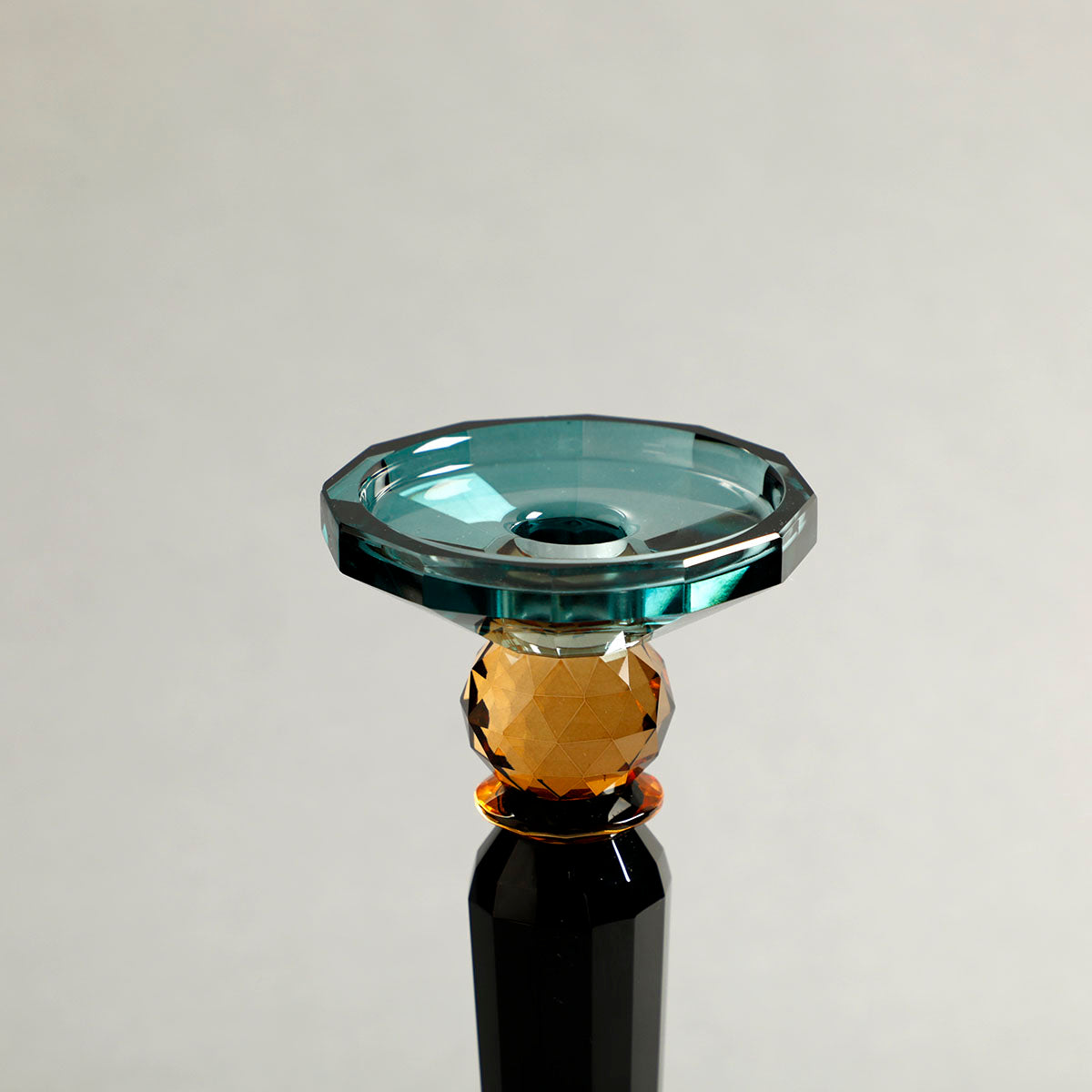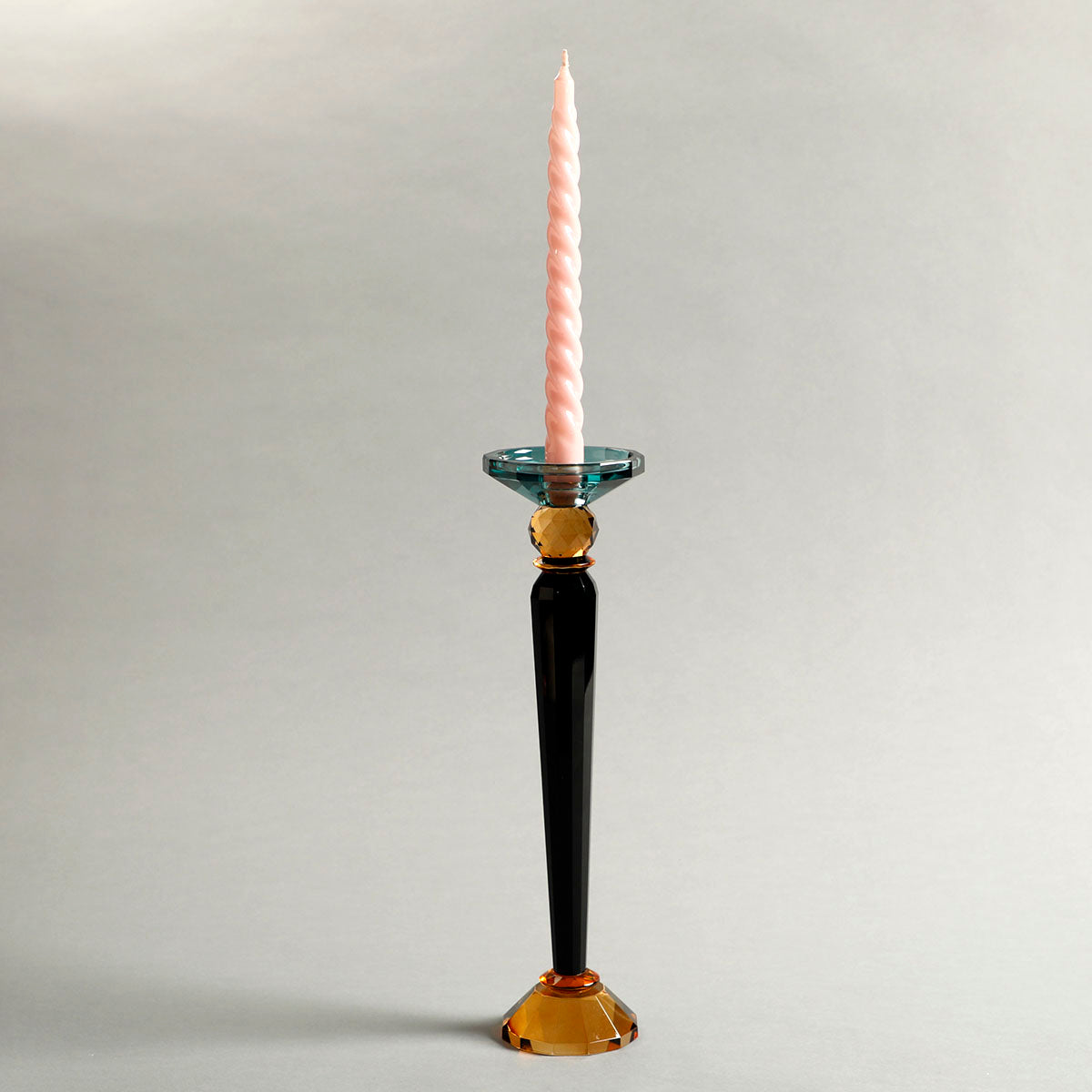 The craftmanship to make Leonard Candle Holder is an impeccable piece of Luxury. The Range is available in 2 sizes. Arrange the Leonard Candle Holder, as a pair or vignette it individually, the grace is elevated coloured crystal material