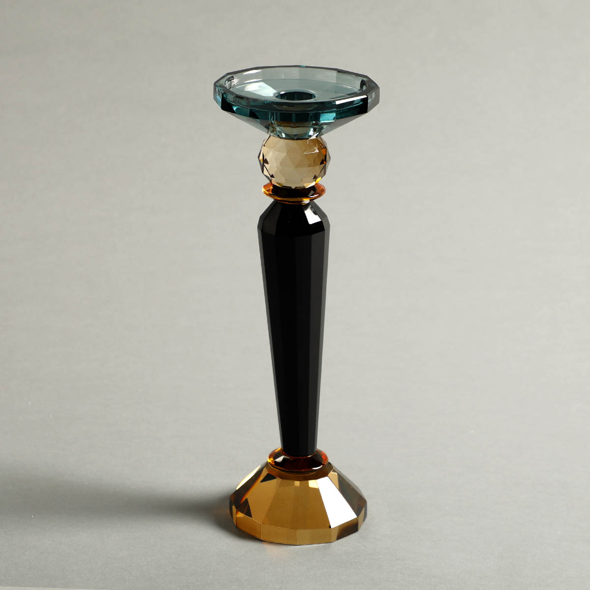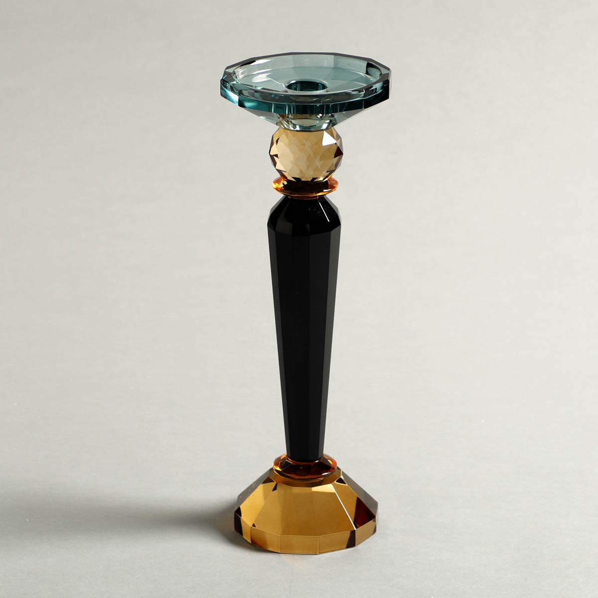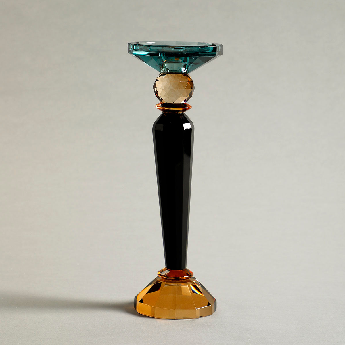 The craftmanship to make Leonard Candle Holder is an impeccable piece of Luxury. The Range is available in 2 sizes. Arrange the Leonard Candle Holder, as a pair or vignette it individually, the grace is elevated coloured crystal material
