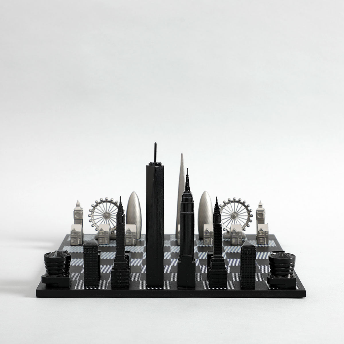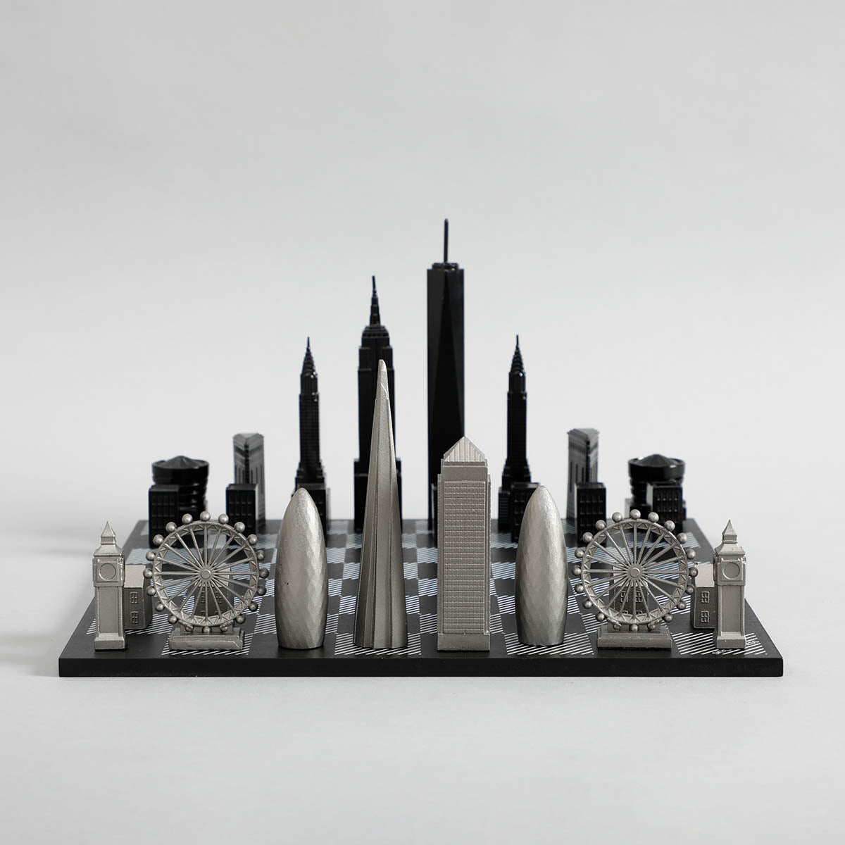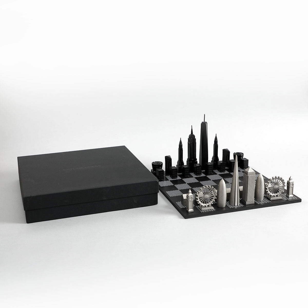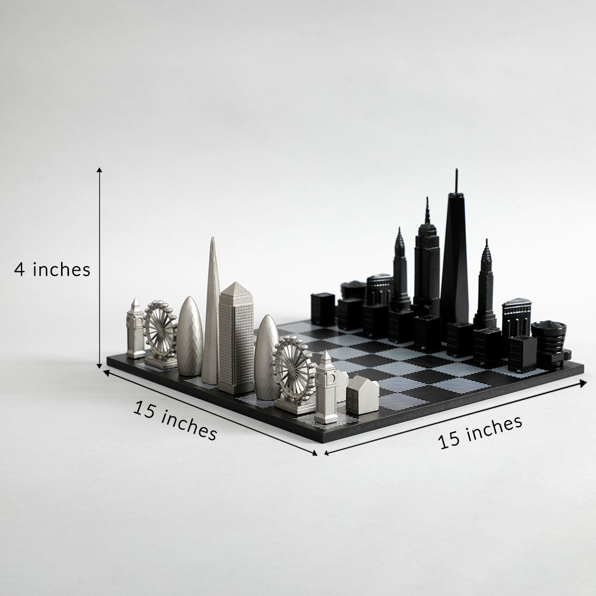 Experience the timeless clash of urban titans with our London vs New York Edition Skyline Chess Set, now crafted with premium stainless steel pieces on a sleek hatch board. This 32-piece set is a modern masterpiece, meticulously designed to capture the essence of these iconic cities. Each piece reflects the architectural splendor of London and New York. The durable stainless steel construction ensures longevity, while the hatch board adds a touch of contemporary elegance to your gaming experience.