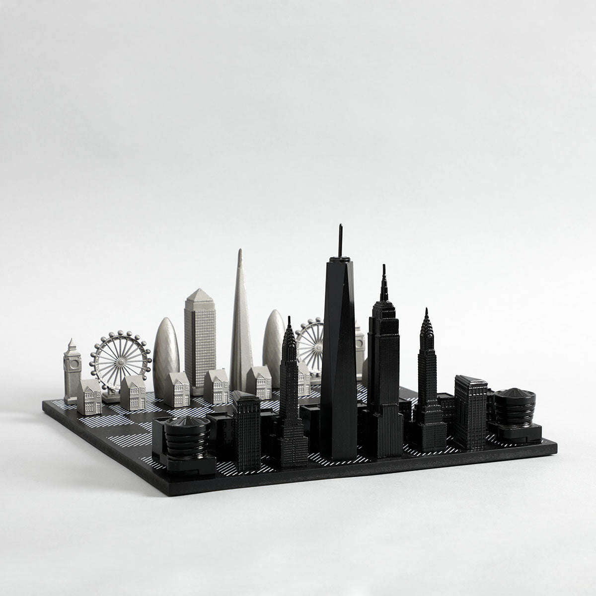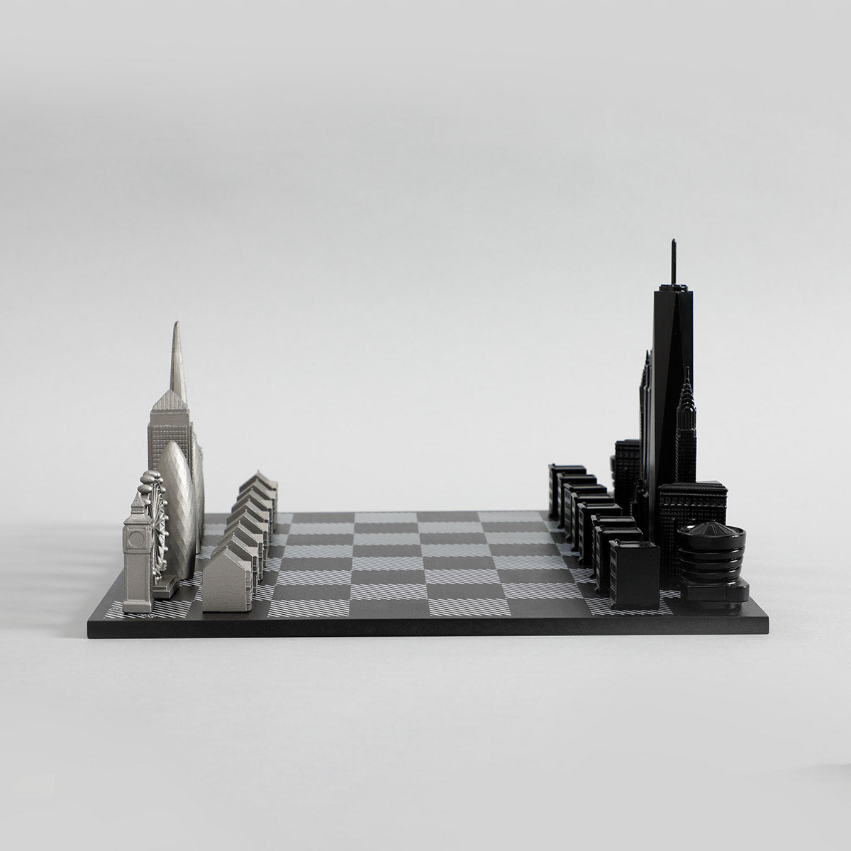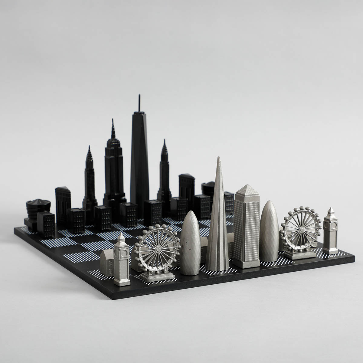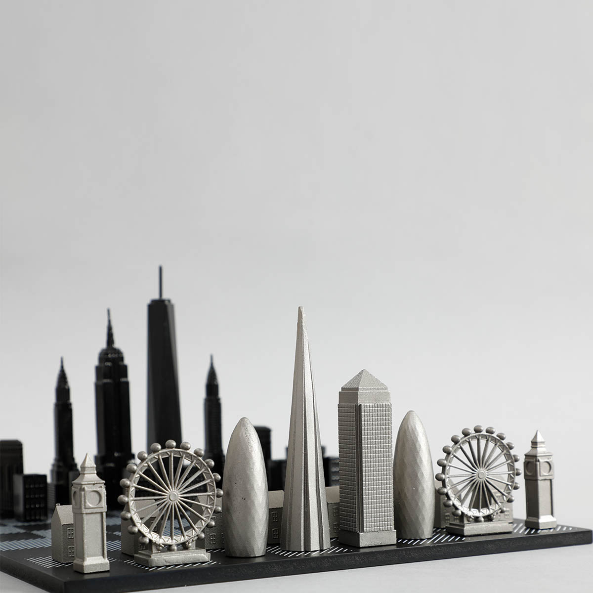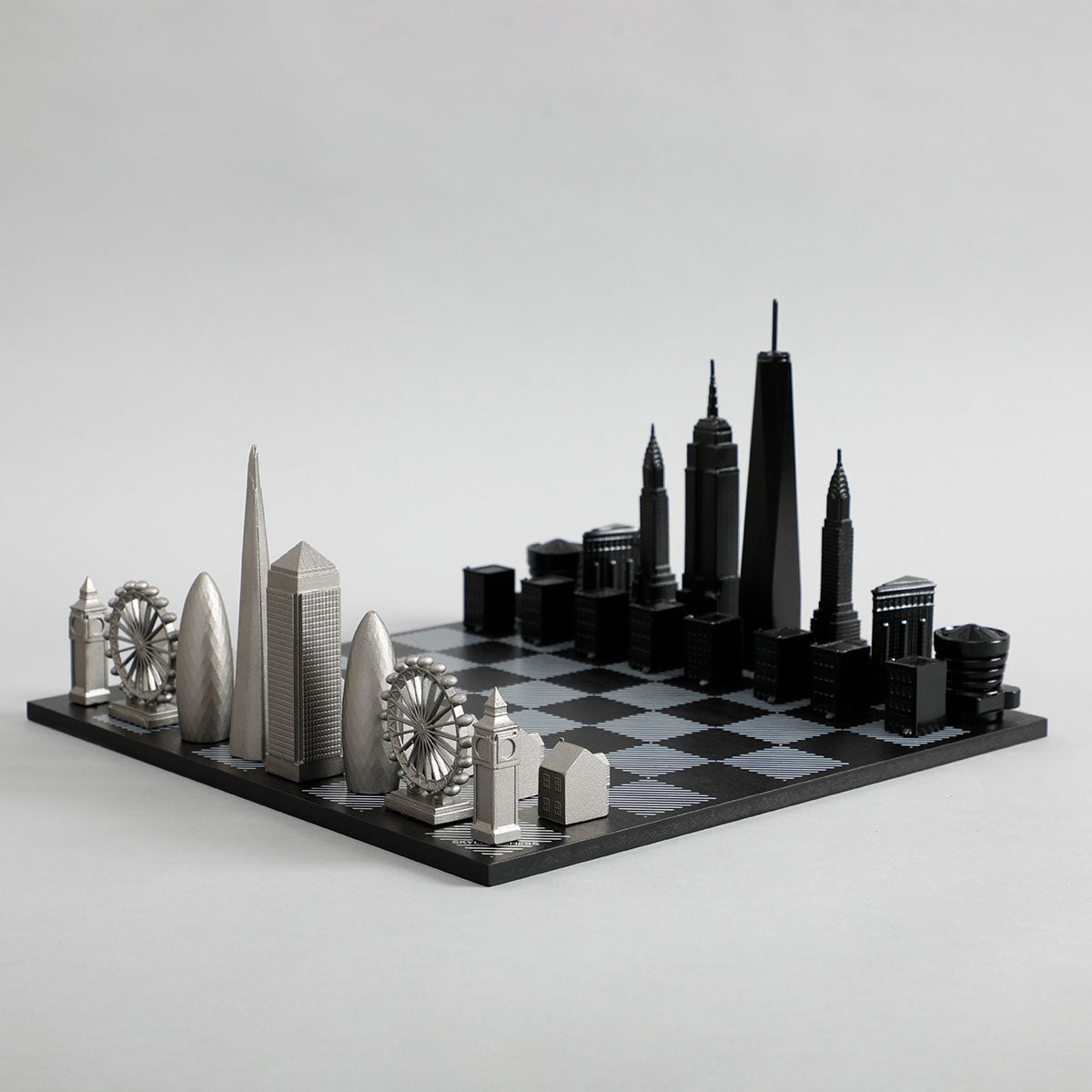 Experience the timeless clash of urban titans with our London vs New York Edition Skyline Chess Set, now crafted with premium stainless steel pieces on a sleek hatch board. This 32-piece set is a modern masterpiece, meticulously designed to capture the essence of these iconic cities. Each piece reflects the architectural splendor of London and New York. The durable stainless steel construction ensures longevity, while the hatch board adds a touch of contemporary elegance to your gaming experience.
