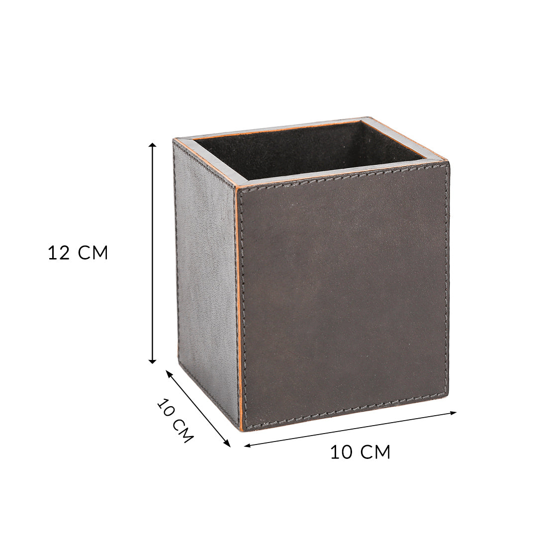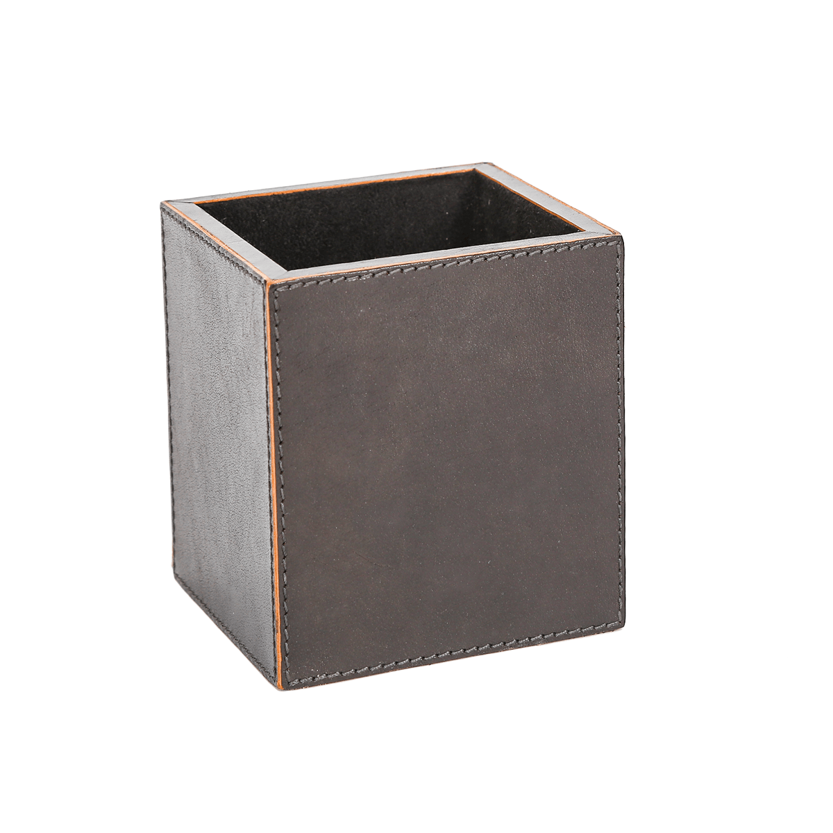 Get everything organized and keep your desktop clean and classy with our leather Pen Cup. This green wrapped leather pen cup is great for storing fine writing instruments and enhance your space.