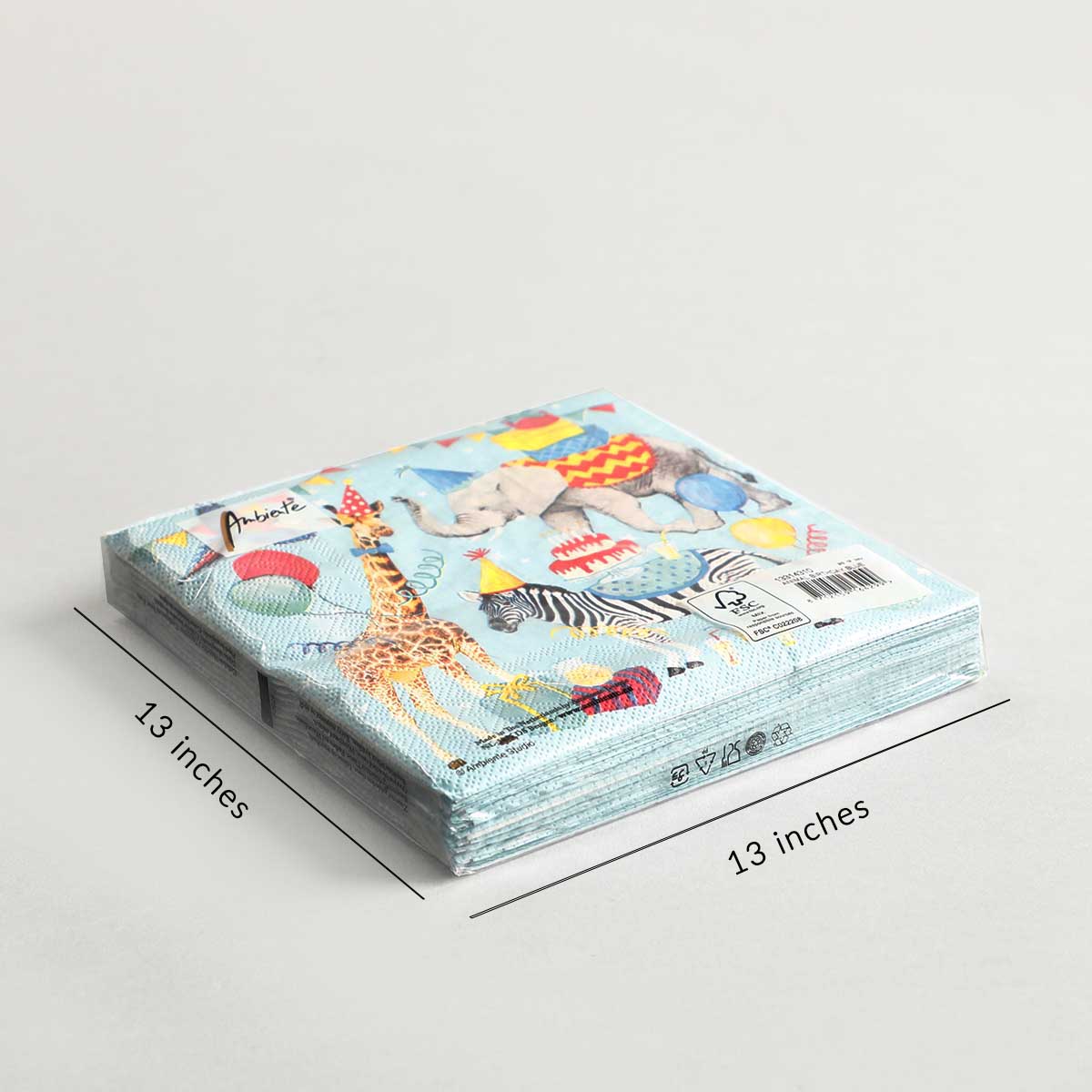 Lunch Napkin Animal birthday Set of 20 is Luxury Paper Products. High-quality, premium 3-ply napkins. Large napkins are great for dinner and even your daily lunch. Finely printed on first grade paper. Excellent for table napkins or decoupage.