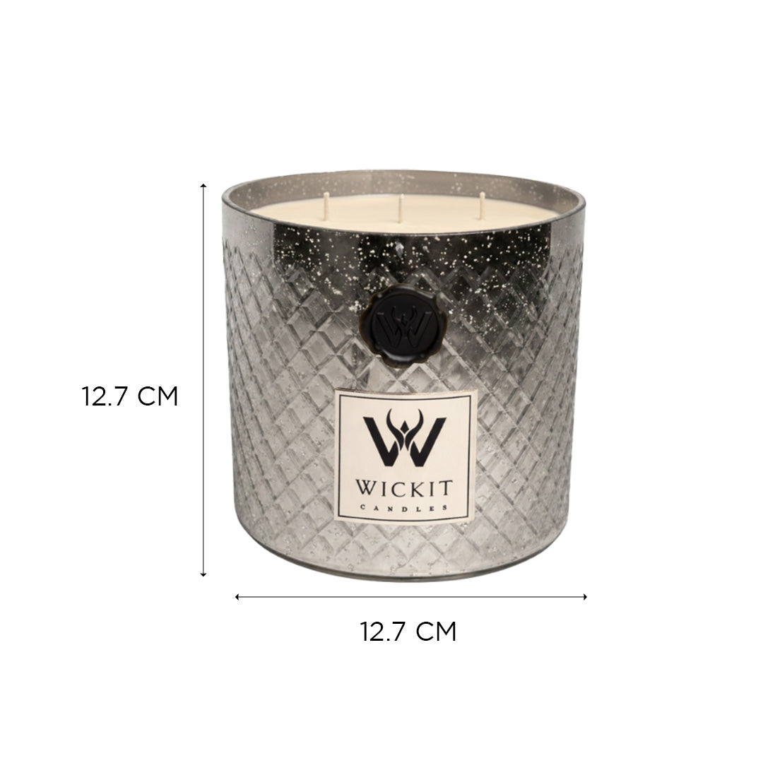 The Mercurial Lattice Seductive Rose Candle is a luxurious fusion of artistry and fragrance, designed to elevate interiors with both visual elegance and a rich sensory experience. Encased in a meticulously hand-blown glass vessel, its intricate lattice-like pattern reveals flowing tones of celadon green and blue-grey, making each piece uniquely sculptural and refined .Velvety saffron and deep rose entwine in a fragrance of pure allure. The intensity of black oudh deepens into a rich base of jasmine and patchouli — mysterious, opulent, and undeniably seductive.