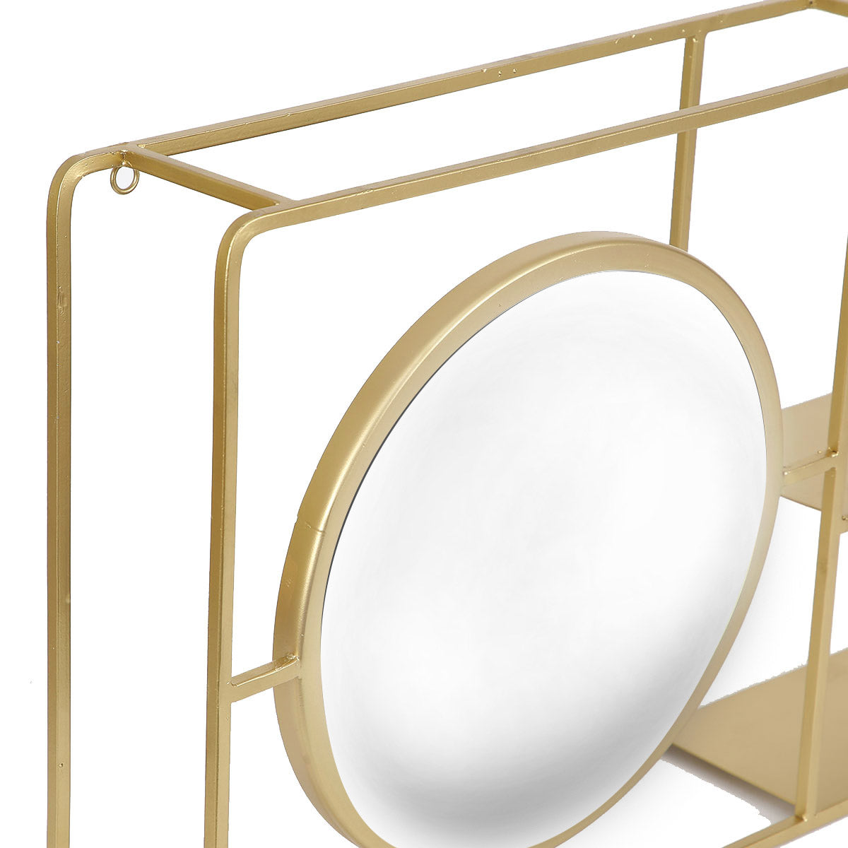 Create a visual and tactile coherence and transform your ordinary living room into an extraordinary one in minutes! Amp up your bland walls with the elegant Nadia Wall Shelf with Mirror that is the perfect mix of form meeting function. Placed on an accent wall or above the credenza, this piece can effortlessly create a focal point while providing some style.