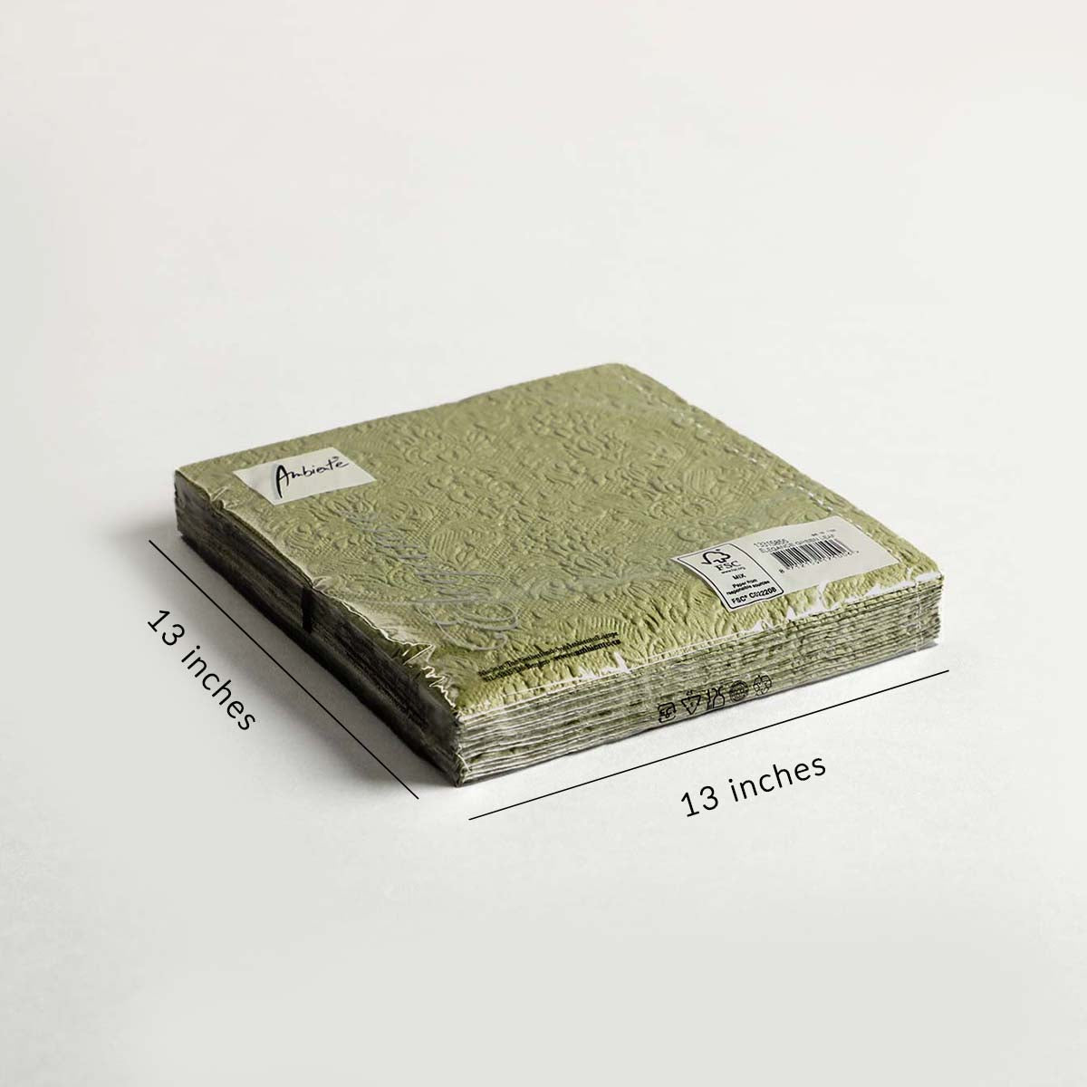 Napkin Green Leaf Set of 15 is Luxury Paper Products. High-quality, premium 3-ply napkins. Large napkins are great for dinner and even your daily lunch. Finely printed on first grade paper. Excellent for table napkins or decoupage.