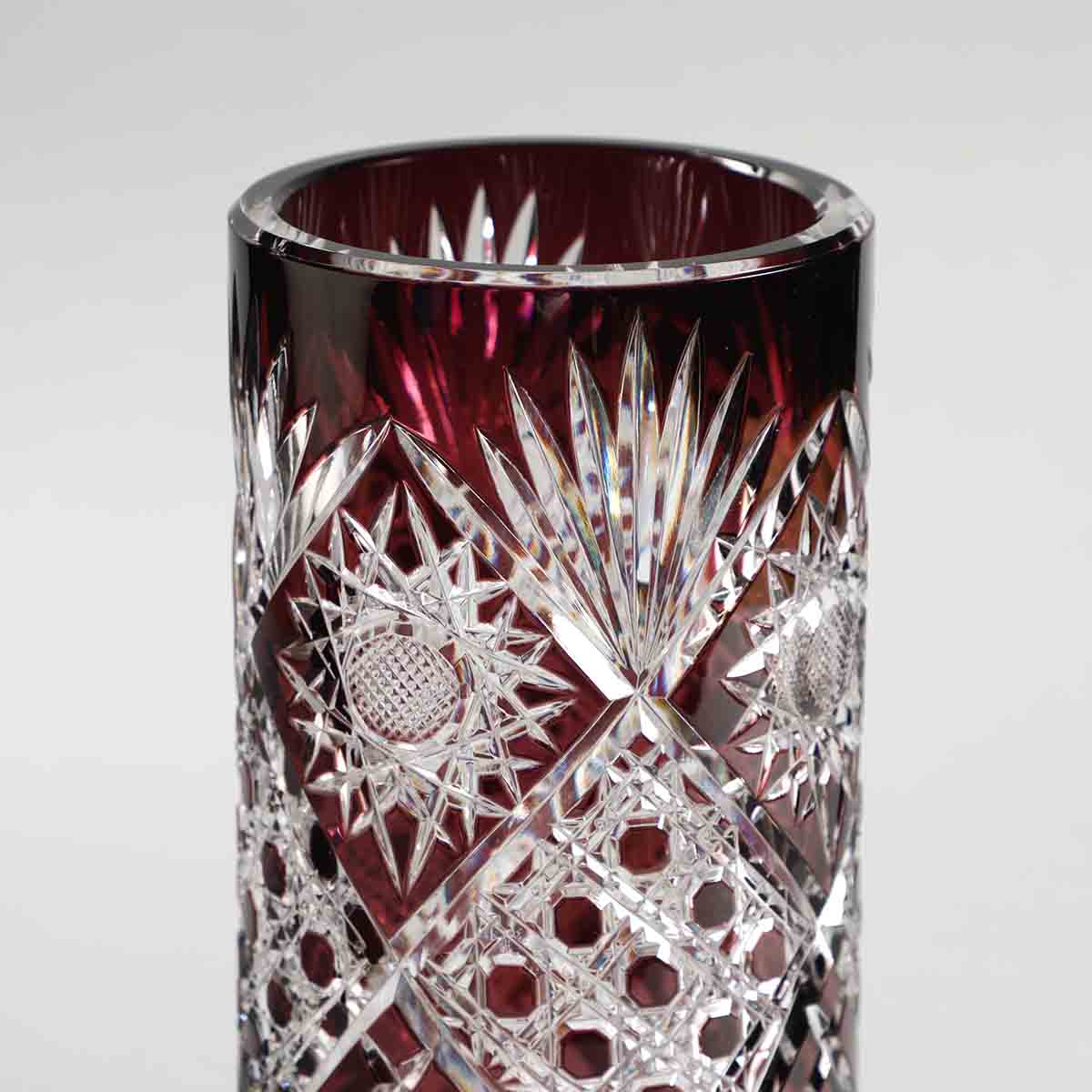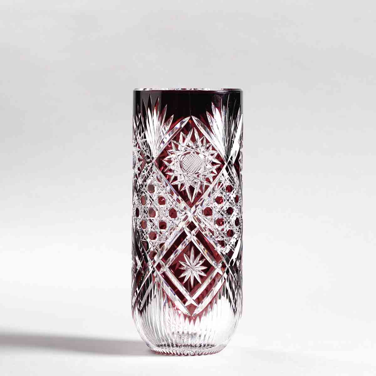 The crystal glass Vase is an example of fine cut work craftsmanship. The Petra Hand-cut Crystal vase has a geometrical tessellated pattern to it, making it a fine contemporary piece. Any microscopic bubble that you notice is part and inherent beauty of the manufacturing process.