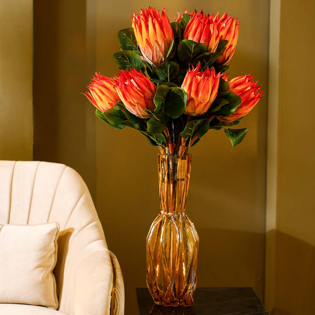 This beautiful Portea Orange Flowers Blossoms Bunch with lushing leaves and stem are like natural looking artificial flowers, close to real flower bunch! With smooth finish to run your hands on, this artificial Stick bunch is pleasing to keep in for your Home decor. The artificial flower Bunch The Bunch is useable as artificial flower bunch for living room, bedside table decor and even suitable for outdoor decor.