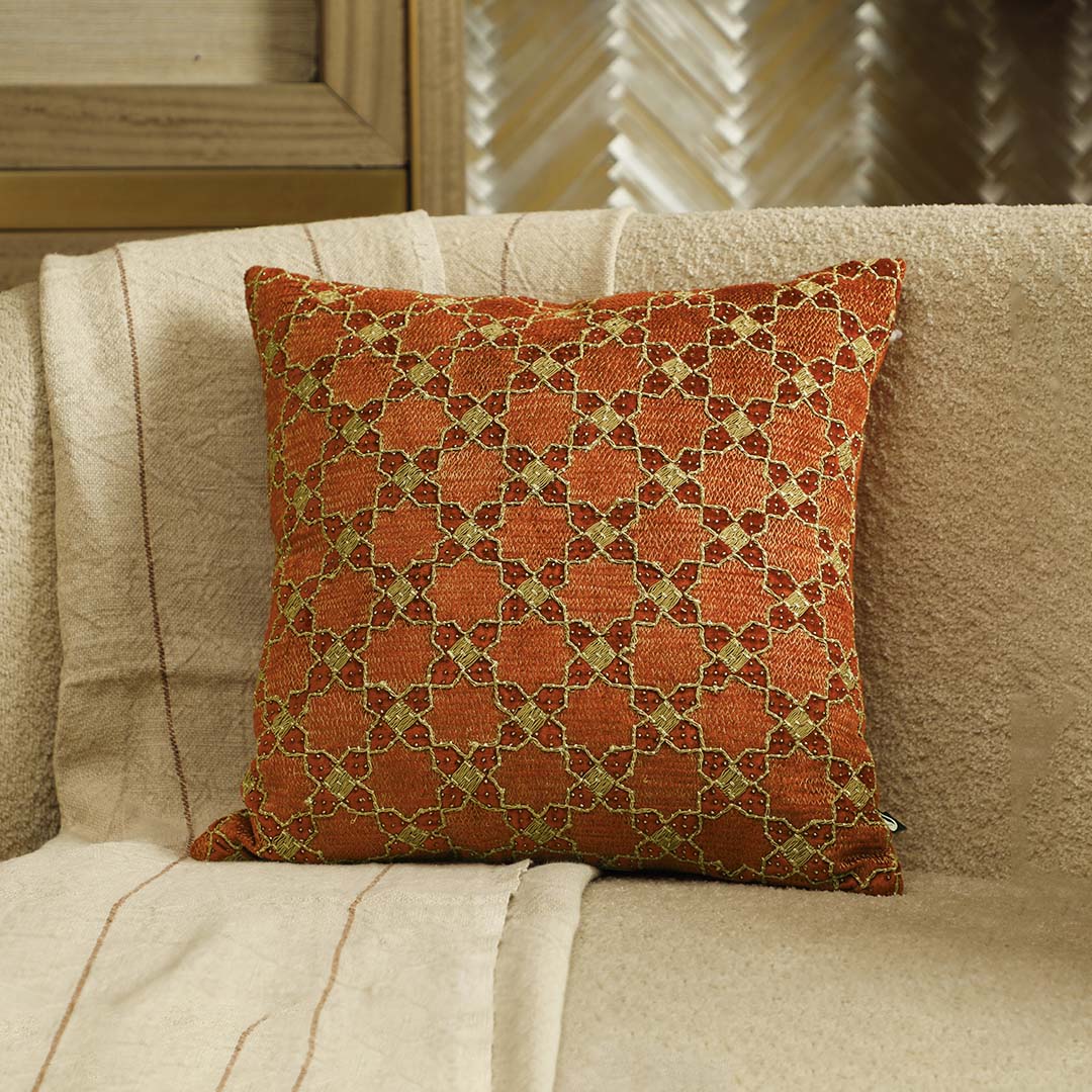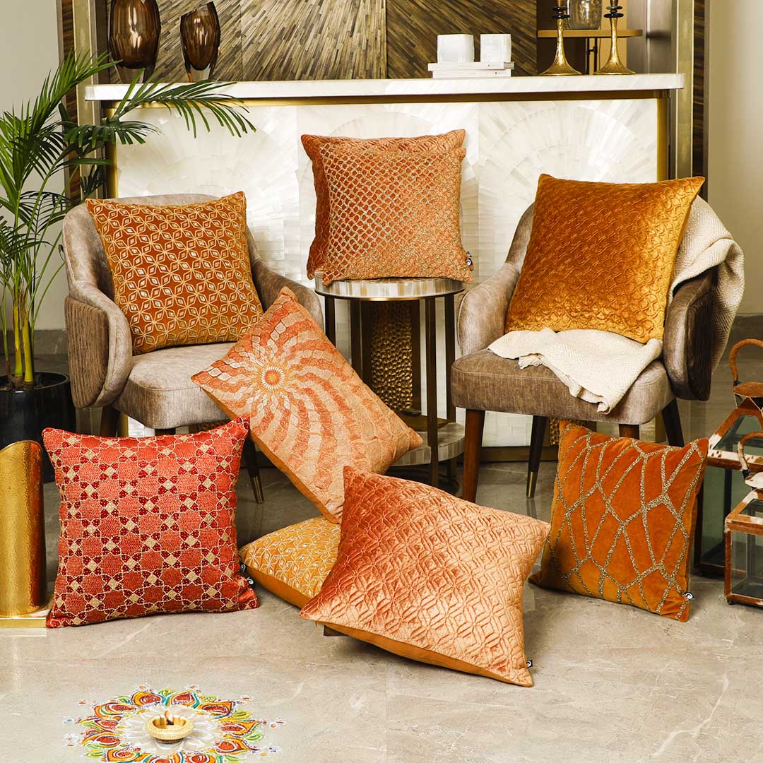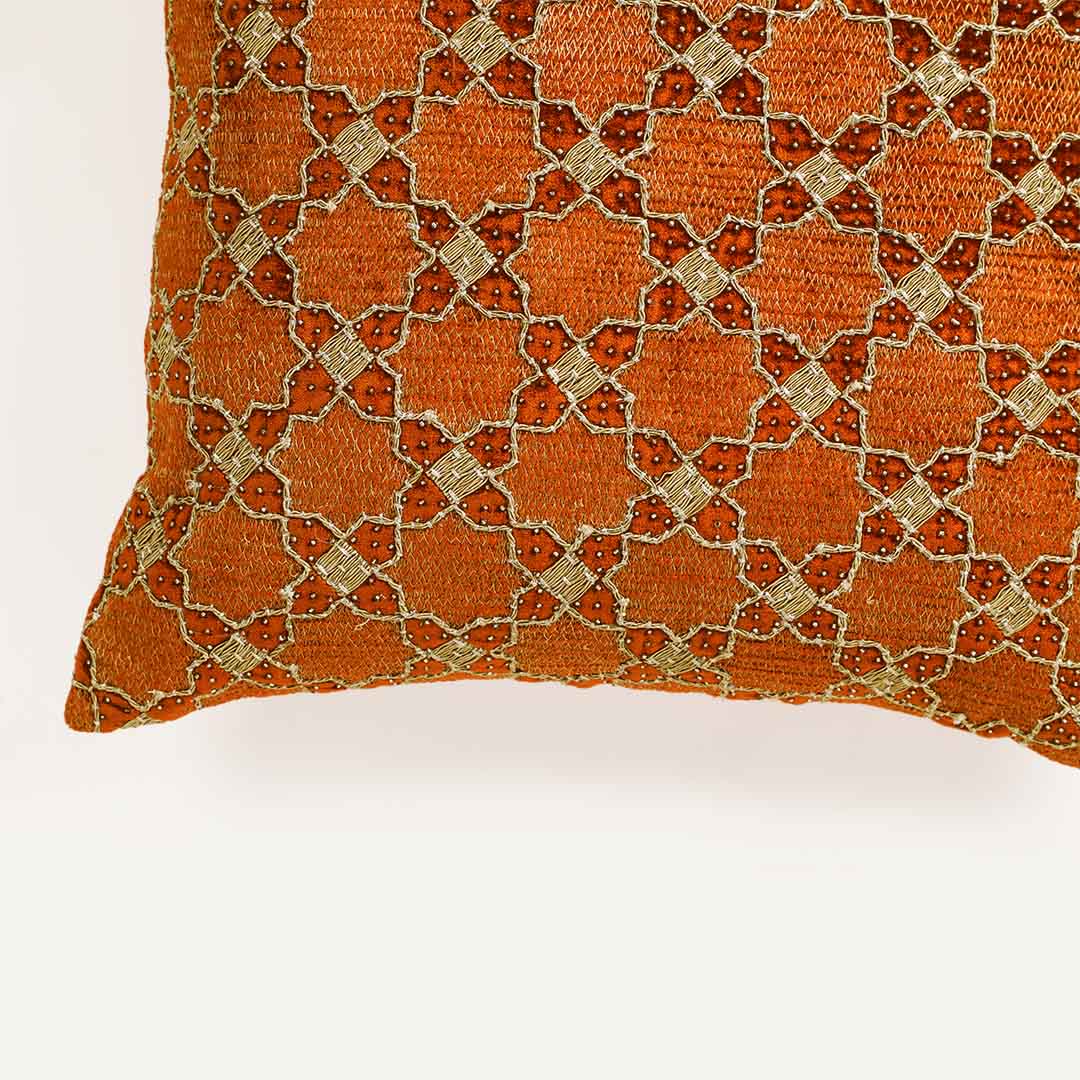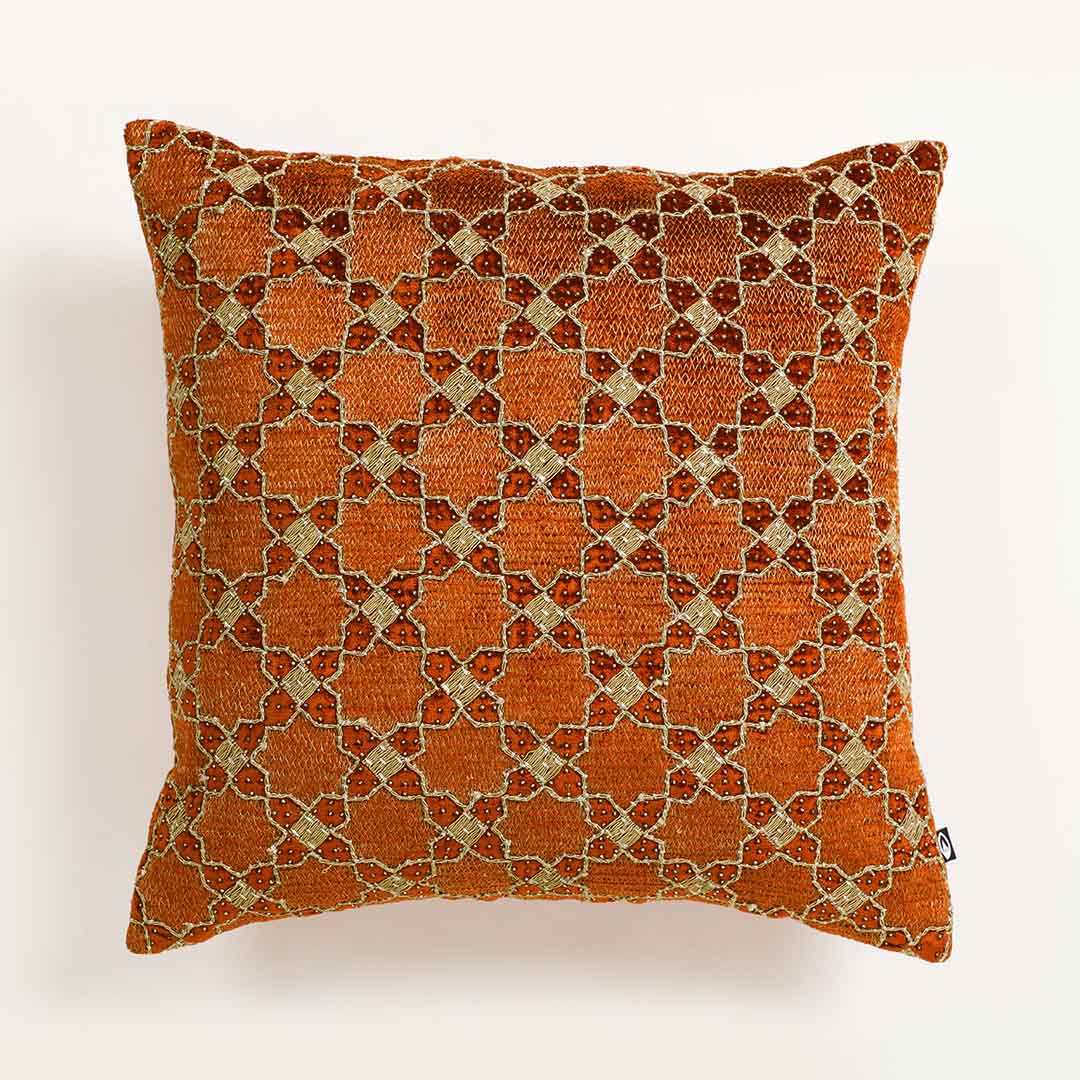 The Rangoli Cushion Cover is a true celebration of refined craftsmanship. Delicately finished with beaded adda work & corded embroidery which creates a raised, sculptural texture that reflects understated luxury. Crafted from a rich velvet fabric, this cushion cover combines softness with durability, ensuring timeless elegance. The concealed zipper closure completes the design with seamless finesse. Perfect for luxury interiors, the Rangoli Cushion Cover adds a layer of bling ,sophistication and artistry to your living space.