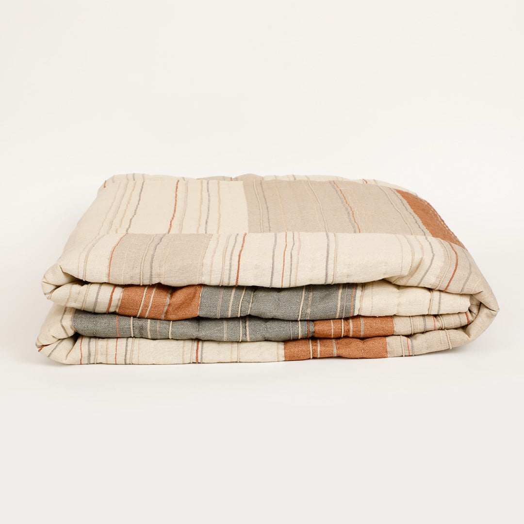 Bring structured charm to your space with this cushion cover featuring a classic grid patchwork look. The Rhythm Printed Bedspread is thoughtfully designed with intersecting panels of textured printed ,embroidered and quilted fabrics, it mimics the clean geometry of a quilted grid. The rhythmic play of lines and color contrasts create a harmonious blend of order and artistry—perfect for modern, rustic, or eclectic interiors.