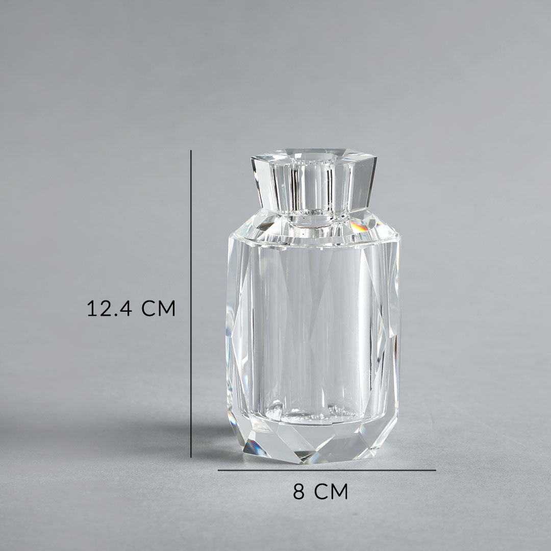 The Saira Crystal Diffuser (Small) is the epitome of luxury in home fragrance. Crafted from premium crystal, this elegant diffuser adds a refined touch to any space while diffusing your favorite scents. The intricate detailing and sparkling clarity of the crystal make it a stunning centerpiece, perfect for creating a serene and luxurious ambiance in intimate settings. A perfect blend of function and beauty, the Saira Diffuser offers a sophisticated sensory experience.