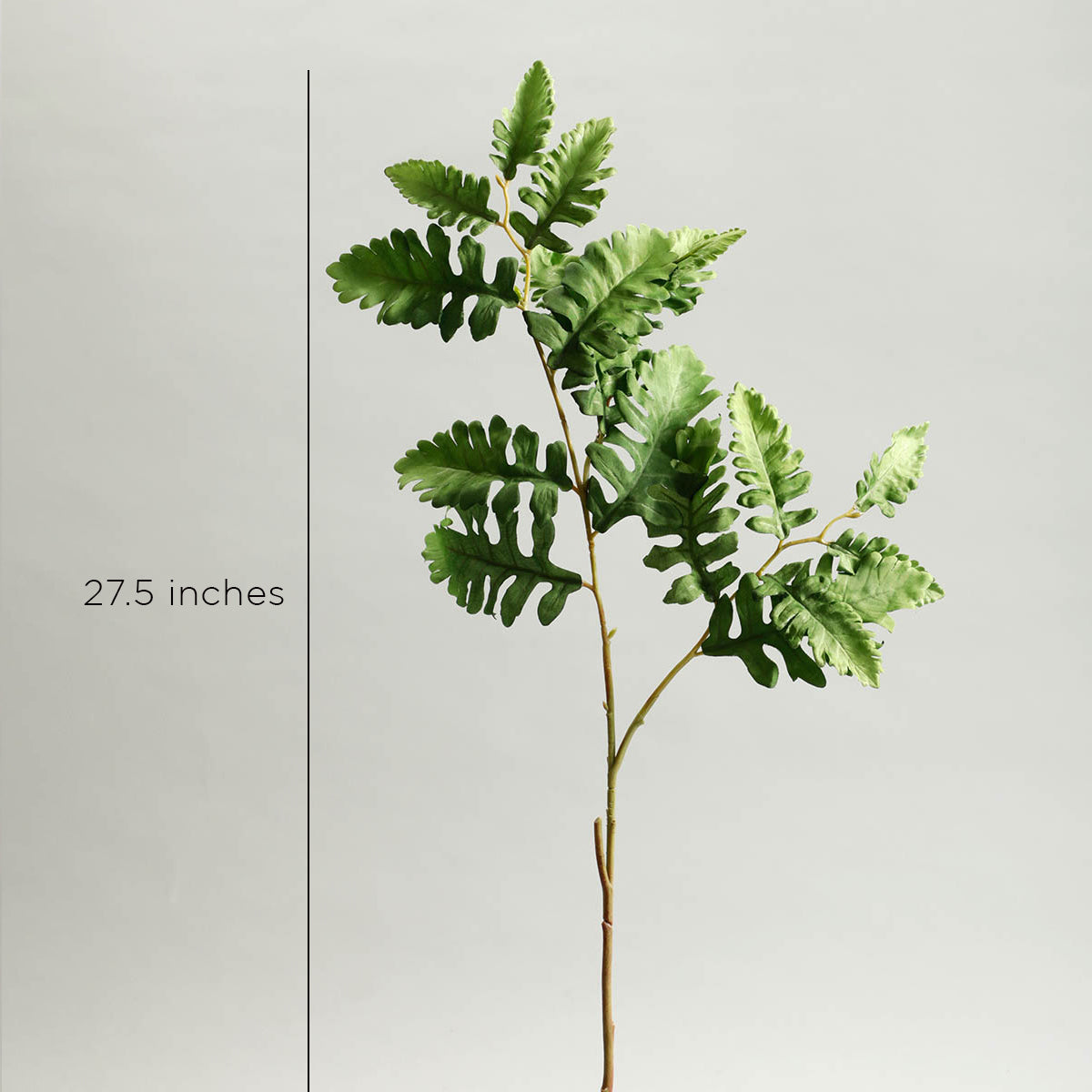 The Cineraria Artificial Green Leaves 27 Inches long Decorative leaves stick for home decor are perfect for creating a natural and calming environment. The lifelike leaves provide a realistic look and feel without the work of live plants, while the branching out lush green ensures greater resiliency and superior durability.