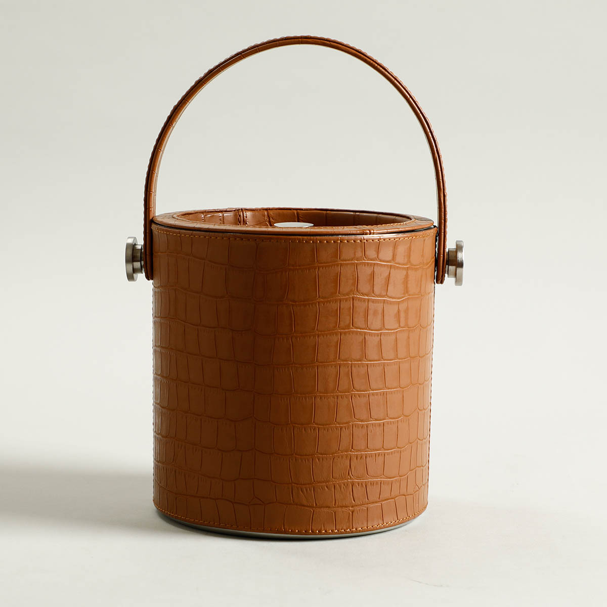 Smart leather bound ice bucket for the drinks trolley or home bar.