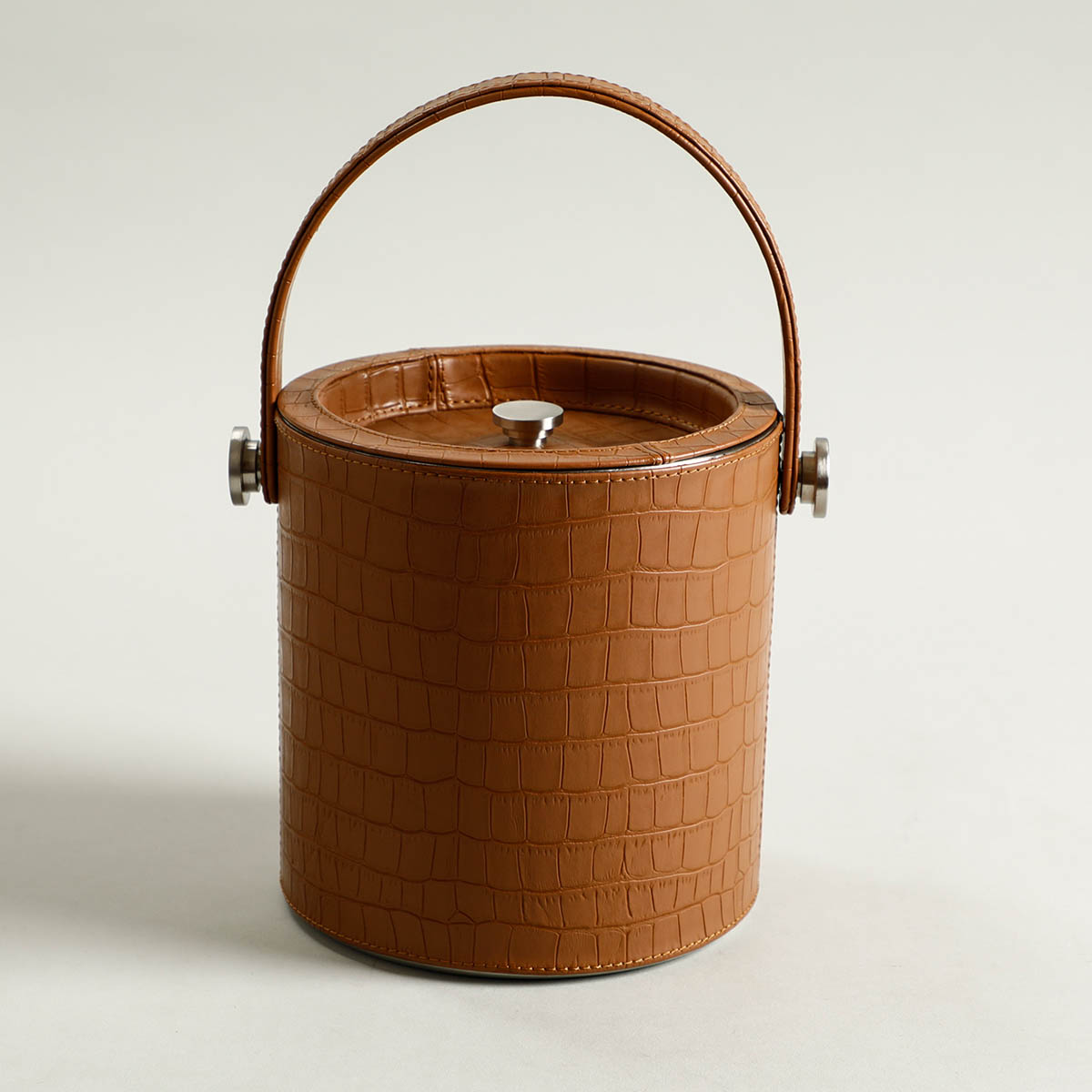 Gorgeous Tan coloured leatherette ice bucket for those who love to serve drinks with style. Comes complete with a lid to keep the ice fresh and serving tongs. The internal bucket is removable for easy cleaning, as made up of Stainless Steel interior.