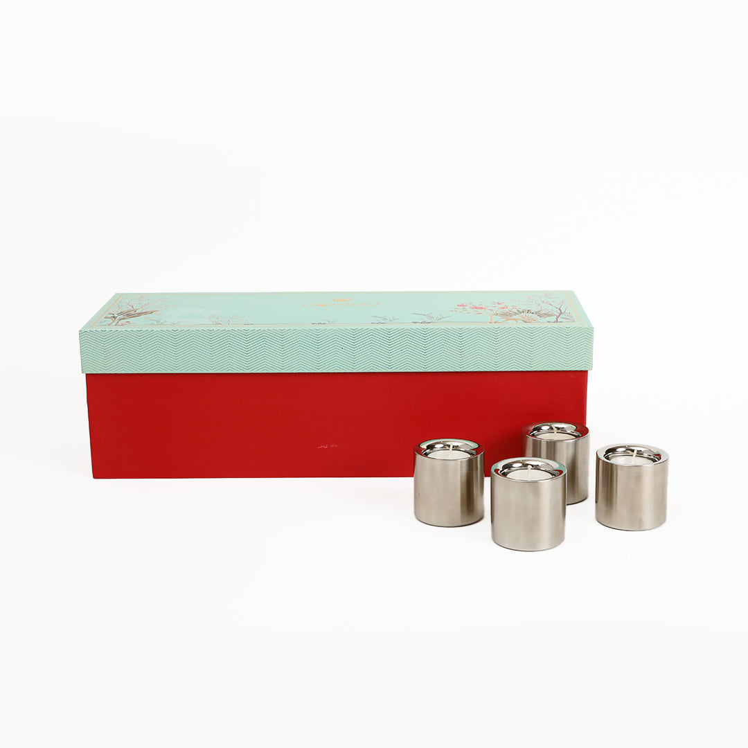With their sculptural silhouette and timeless appeal, these stainless steel t-light candle holders bring a sense of balance, warmth, and luxury to your décor. Thoughtfully presented as a set of four with 4 t -lights in a premium gift box, they make for a graceful addition to modern homes or an elegant choice for gifting.