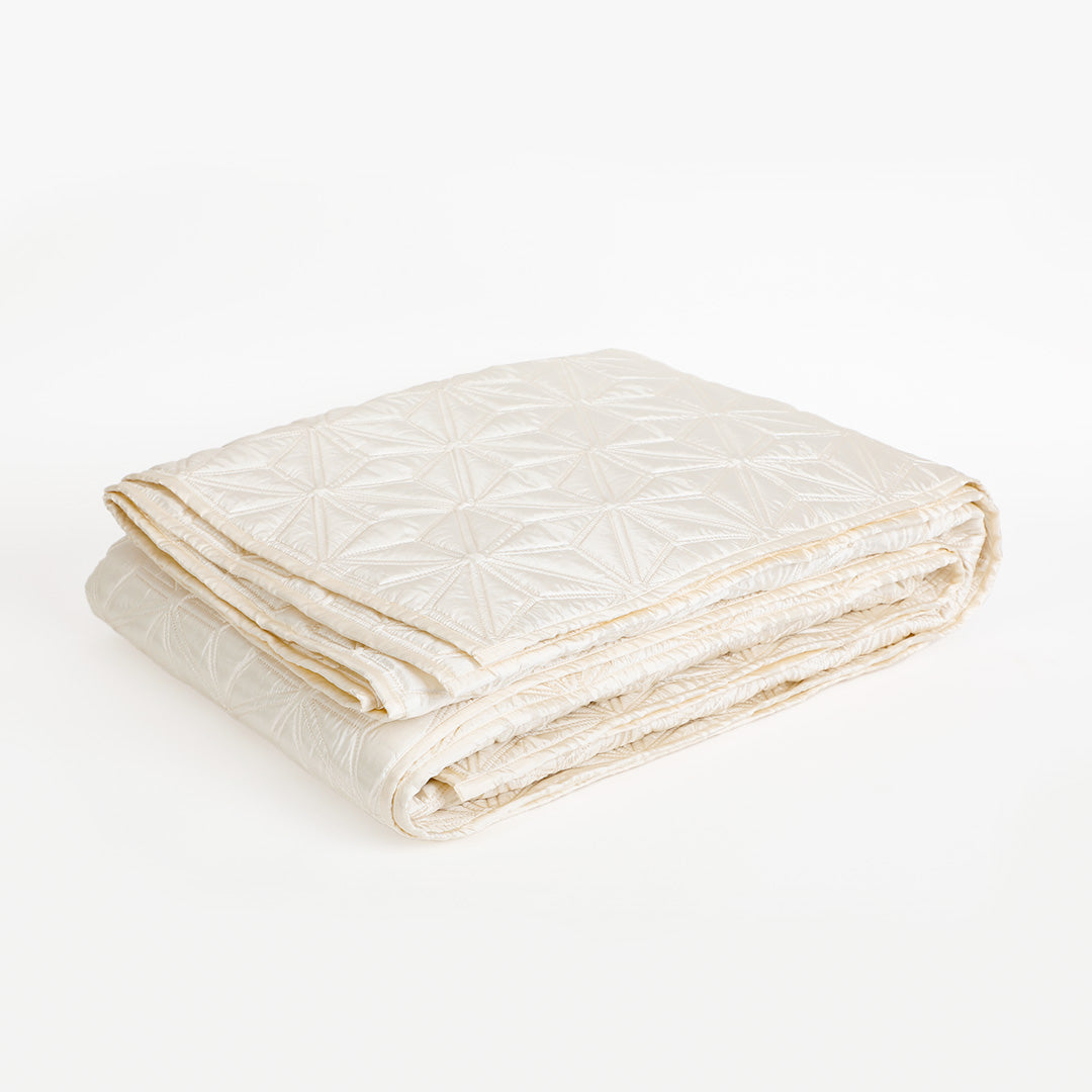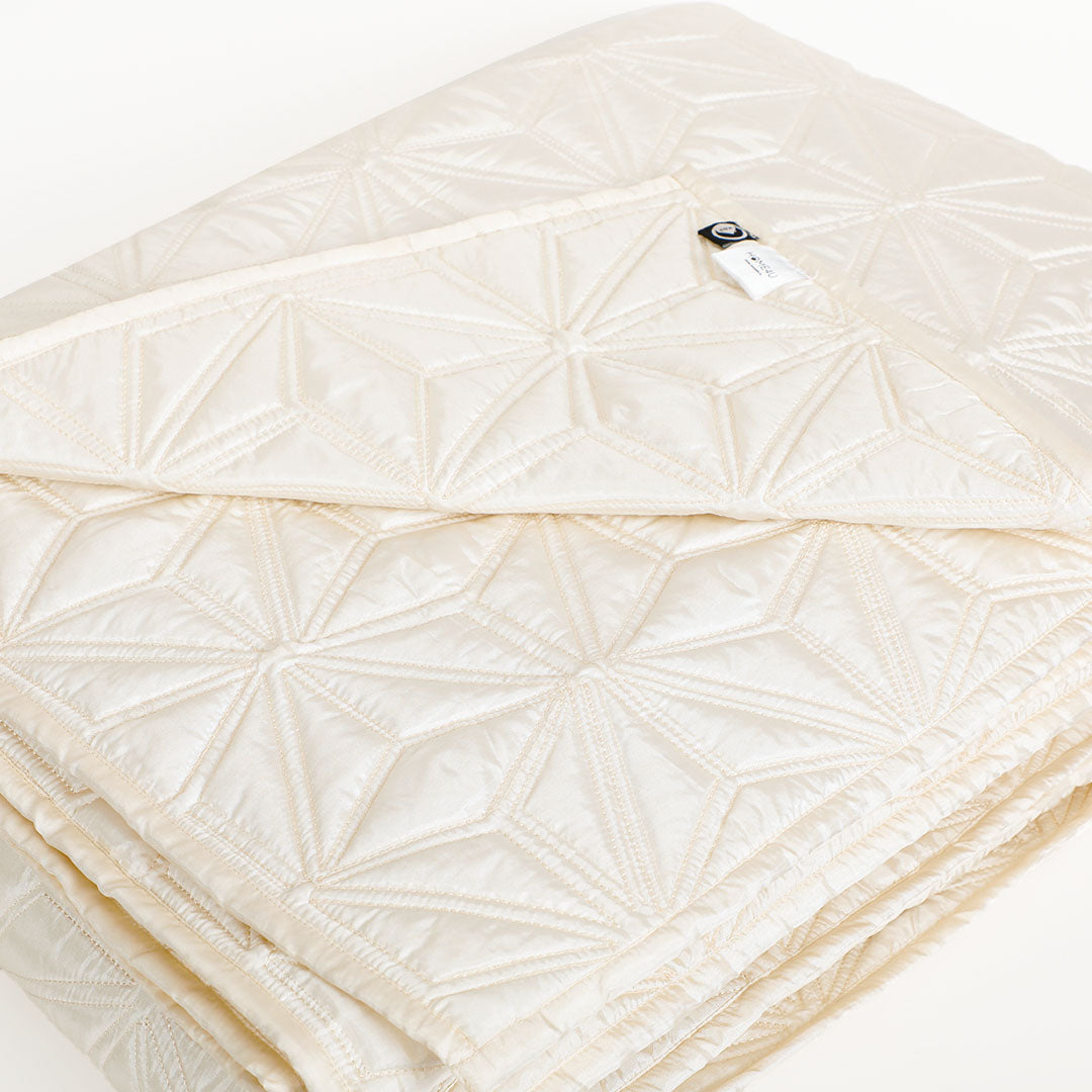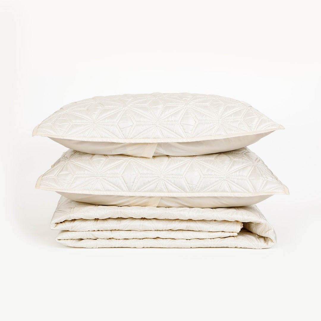 Bring elegance and comfort to your bedroom with the Stellar Quilt and Sham Set of 2. Designed with soft luxe silk ,this set offers festive warmth .The gorgeous quilt set features a star patterned quilted surface which enhances the visual appeal of this set to another level, adding a touch of sophistication and understated luxury to your interiors . This quilt set as the name suggests is a stellar gifting option for your near and dear ones .