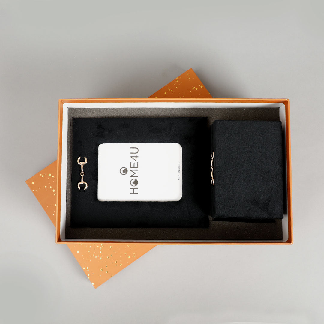 Elegant and refined, the Tresor Velvet Box and Photo Frame Gift Set is the perfect way to capture and store memories in style. The luxurious black velvet box is ideal for keeping cherished keepsakes, while the matching photo frame adds a personal touch to any room. This beautifully coordinated set makes for a thoughtful and classy gift, ideal for weddings, anniversaries, or special occasions.