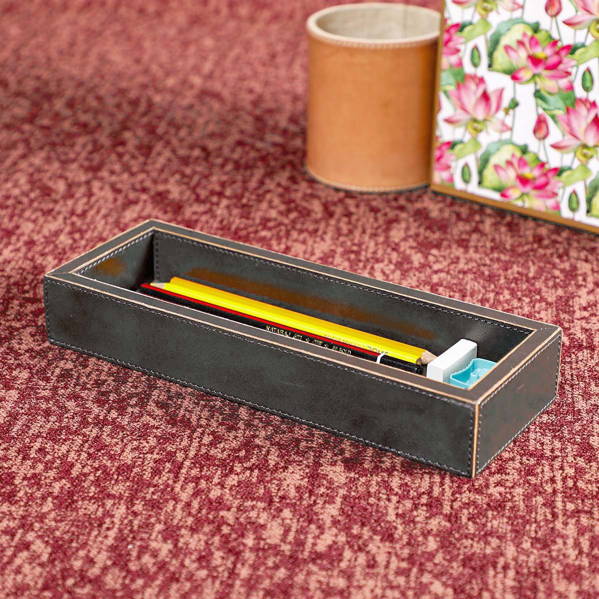 Keep your desktop clean and organized with our Black leather stationery tray.