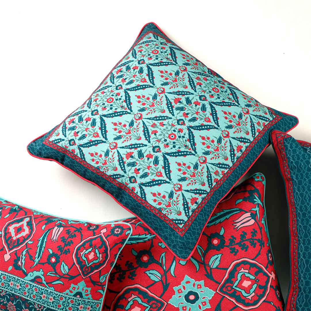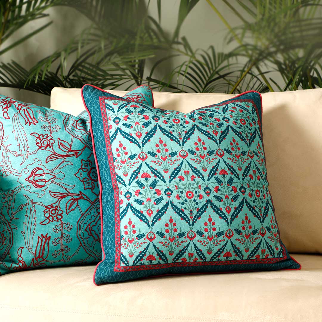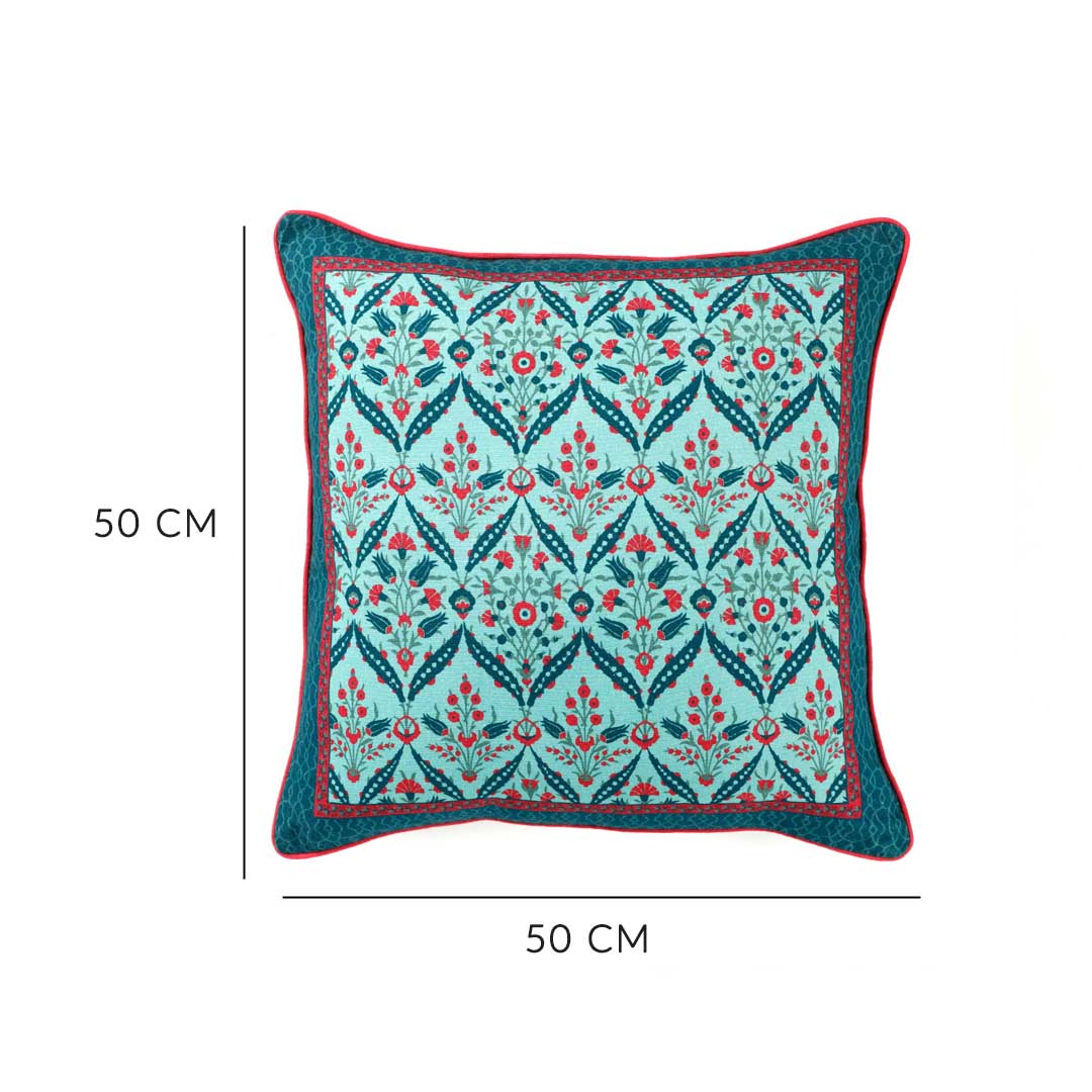 Bring a refreshing touch of nature to your space with the Zahra Cushion Cover. Featuring a floral inspired harmonious blend of green and teal hues, this cover instantly uplifts any setting with its calming and vibrant vibe. The intricate design adds texture and character, perfect for creating a cozy, stylish atmosphere in your living room or bedroom.