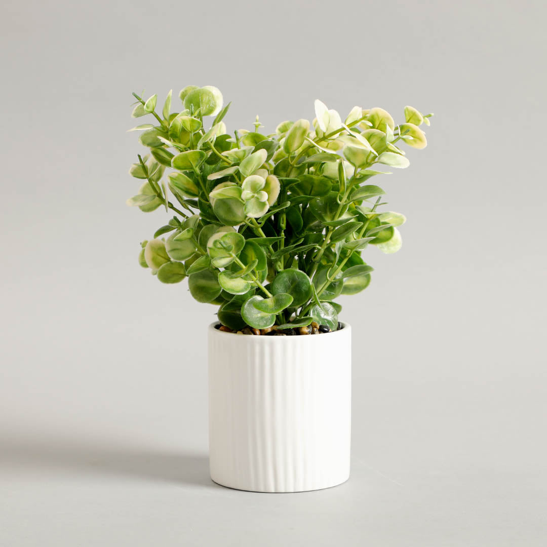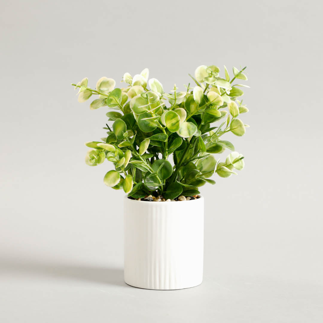 The Zelen Potted Plant captures the essence of lush greenery with its rich, lifelike design. Made with high-quality plastic and fabric, this green-colored plant adds a refreshing touch to any room. The sturdy ceramic pot complements the greenery with a smooth, polished finish, providing a chic, modern look. Whether placed on a windowsill, countertop, or shelf, this low-maintenance plant brings natural beauty to your decor effortlessly.